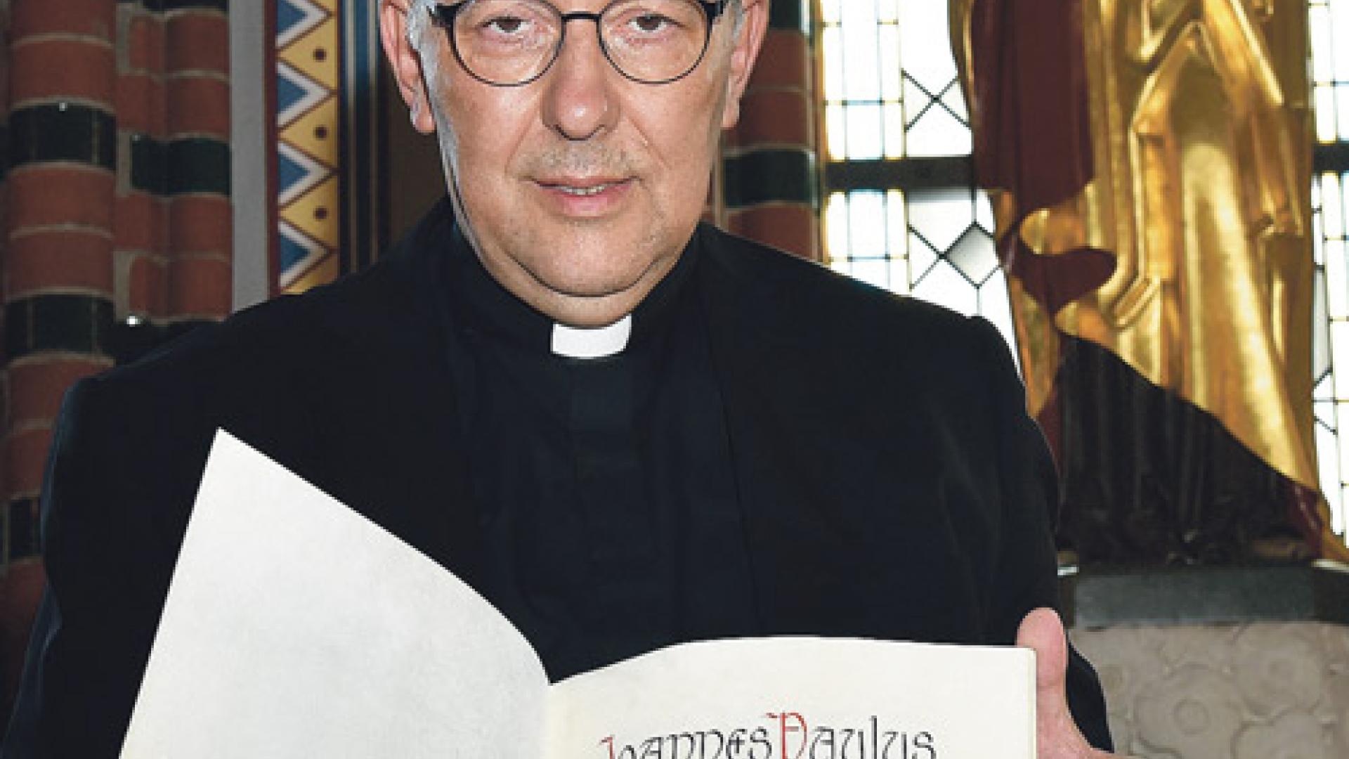 | Bischof Wolfgang Ipolt mit der Gründungsurkunde des Bistums Görlitz. | Fotos: Raphael Schmidt |