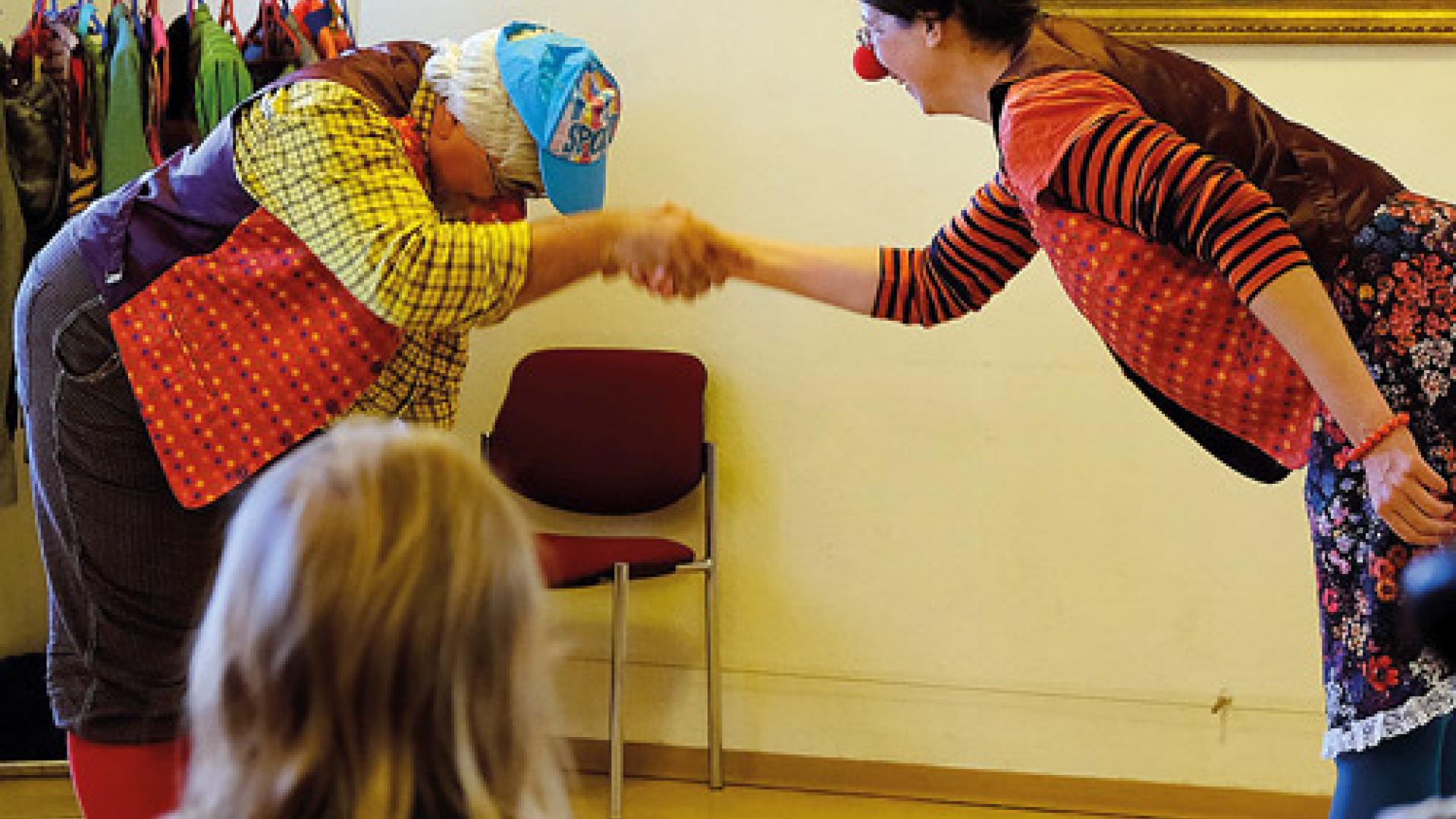 | Ein Theaterstück mit den Clowns Tomtom und Kiki Kokolores ist das Herzstück des Kinder-Starkmach-Tages. Die Kinder können den Verlauf des Stücks selbst beeinflussen und werden so darin bestärkt, eigene Gefühle wahr- und ernstzunehmen. Foto: Felix Hoffmann |