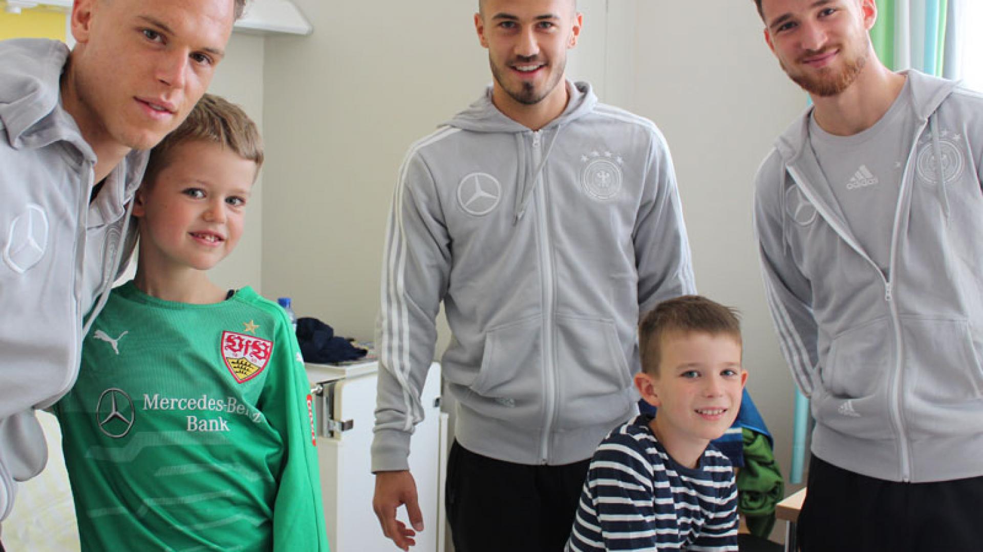Mehrere Kicker der U-20-Nationalmannschaft des DFB haben sich im Lingener St. Bonifatius Hospital umgesehen. Die kranken Kinder hatten viele Fragen an die Profis.