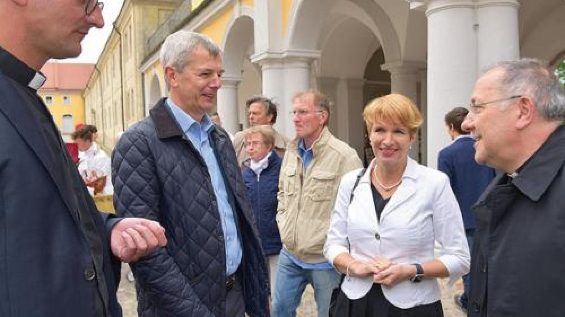 Für die Eröffnung des Kulturland-Brandenburg-Jahres 2018 „könnte es kaum einen besseren Ort geben“ als Neuzelle. Das sagte Martina Münch, die Ministerin für Wissenschaft, Forschung und Kultur des Landes Brandenburg, am 18. Mai im Klosterhof des Zisterzienserklosters Neuzelle. Eröffnet wurde damit gleichzeitig das Jubiläumsjahr des Zisterzienserklosters Neuzelle. Als einen der Gründe nannte die Ministerin: „In diesem Jahr wird hier das 750. Jubiläum der Klostergründung gefeiert und 200 Jahre evangelische Gemeinde. Mit einem ebenso umfangreichen wie beeindruckenden Programm wird die Geschichte und Gegenwart dieses Ensembles neu und spannend in den Blickpunkt gerückt! Und gerade in diesem Jubiläumsjahr schließt sich dazu – wie ich finde – in wunderbarer Weise ein Kreis hin zum Ursprung des Klosters: Die Wiederansiedlung von Zisterzienser-Mönchen wird das Kloster weiter beleben, es als spirituellen Ort erfahrbar machen – und die Strahlkraft der Klosteranlage nochmals erheblich verstärken.“ Insgesamt sieht Ministerin Münch Kulturjahr und Jubiläumsjahr in Neuzelle „unter einem guten Stern“.