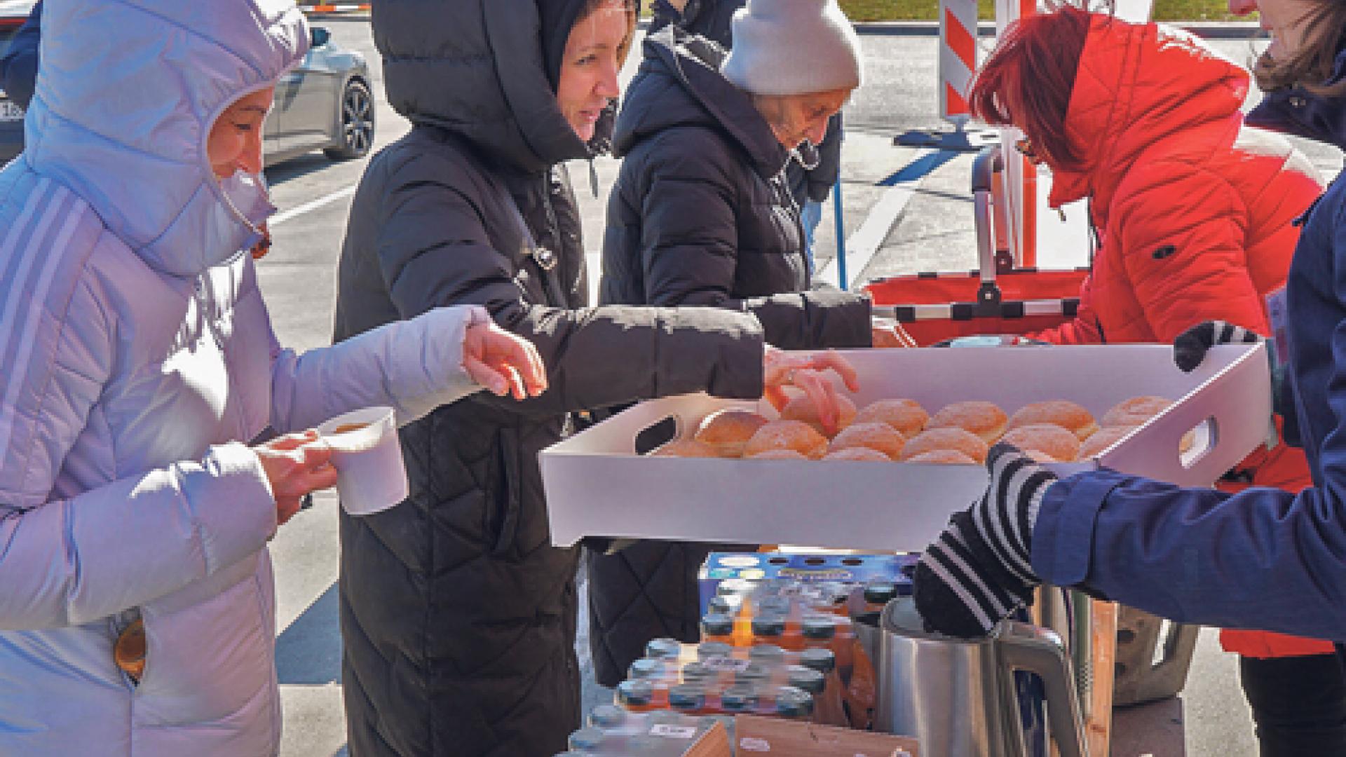 Großzügig und hilfsbereit: An einer Autobahnraststätte an der A4 haben Ehrenamtliche nach Beginn des Ukraine-Kriegs Neuankömmlingen einen süßen Empfang bereitet.    Foto: imago / Ricardo Herzog