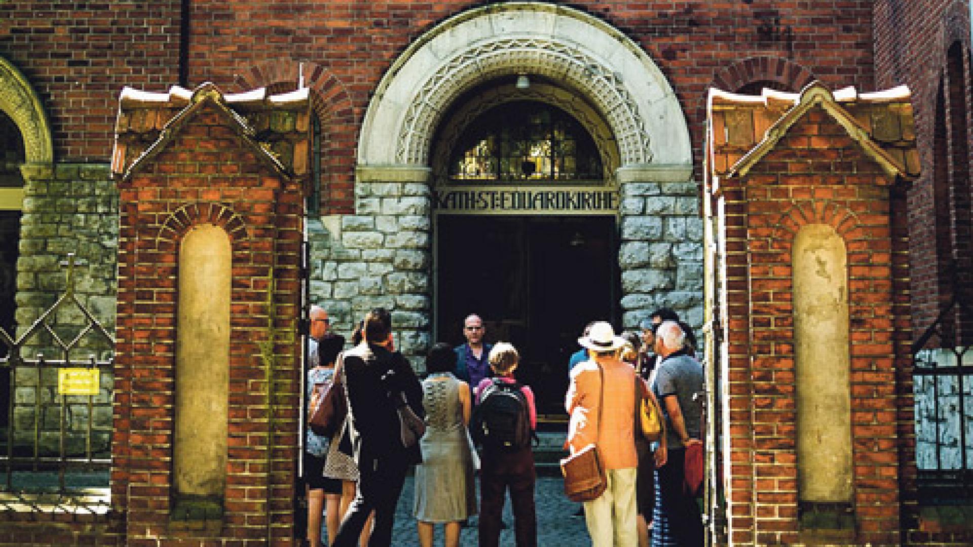 | Die Gruppe vor der St. Eduard-Kirche in Berlin-Neukölln. | Foto: Henriette Gängel |