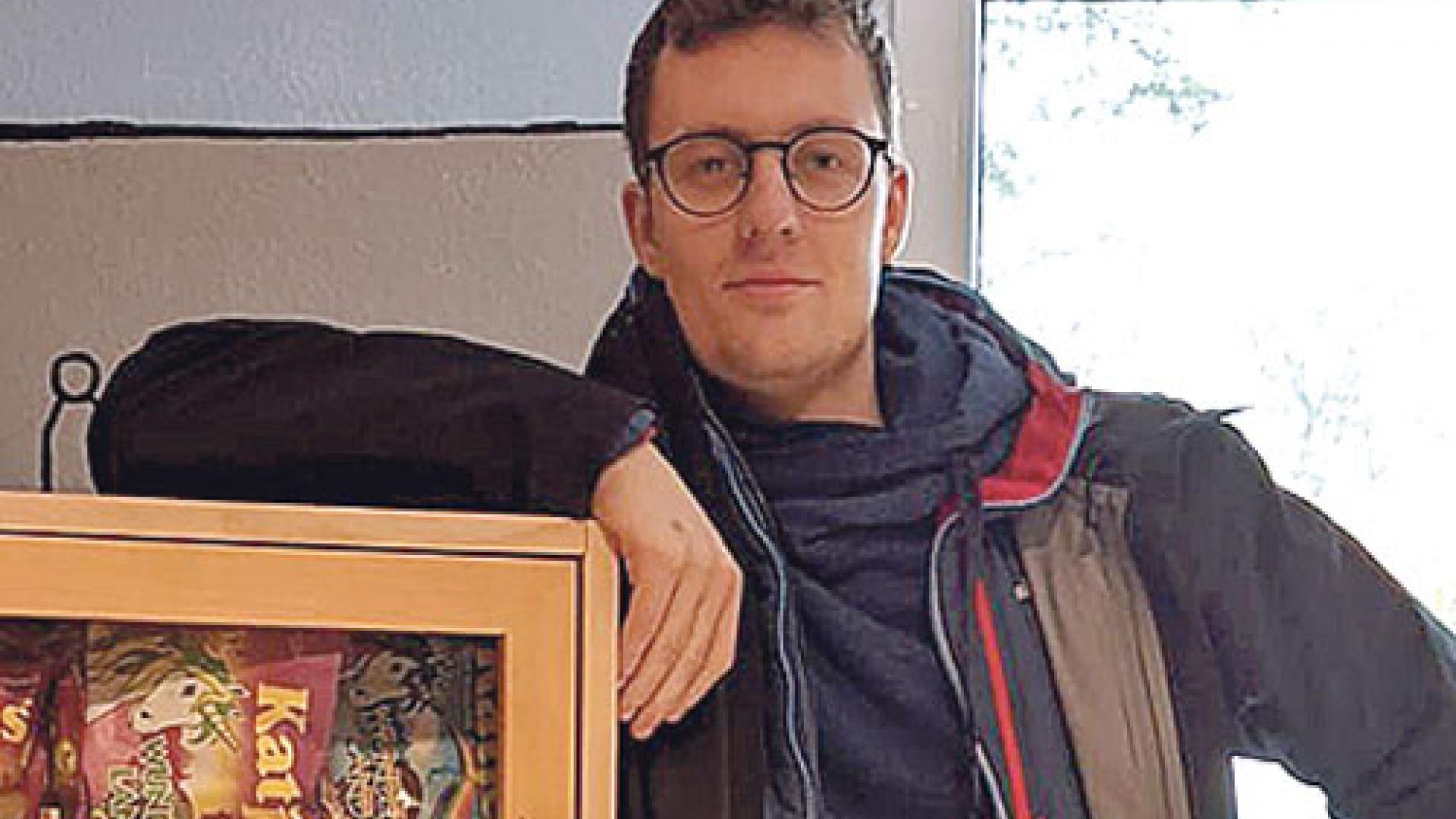 | Raphael Erbe mit seinem Snackautomaten. Foto: Christoph Biesenbach |