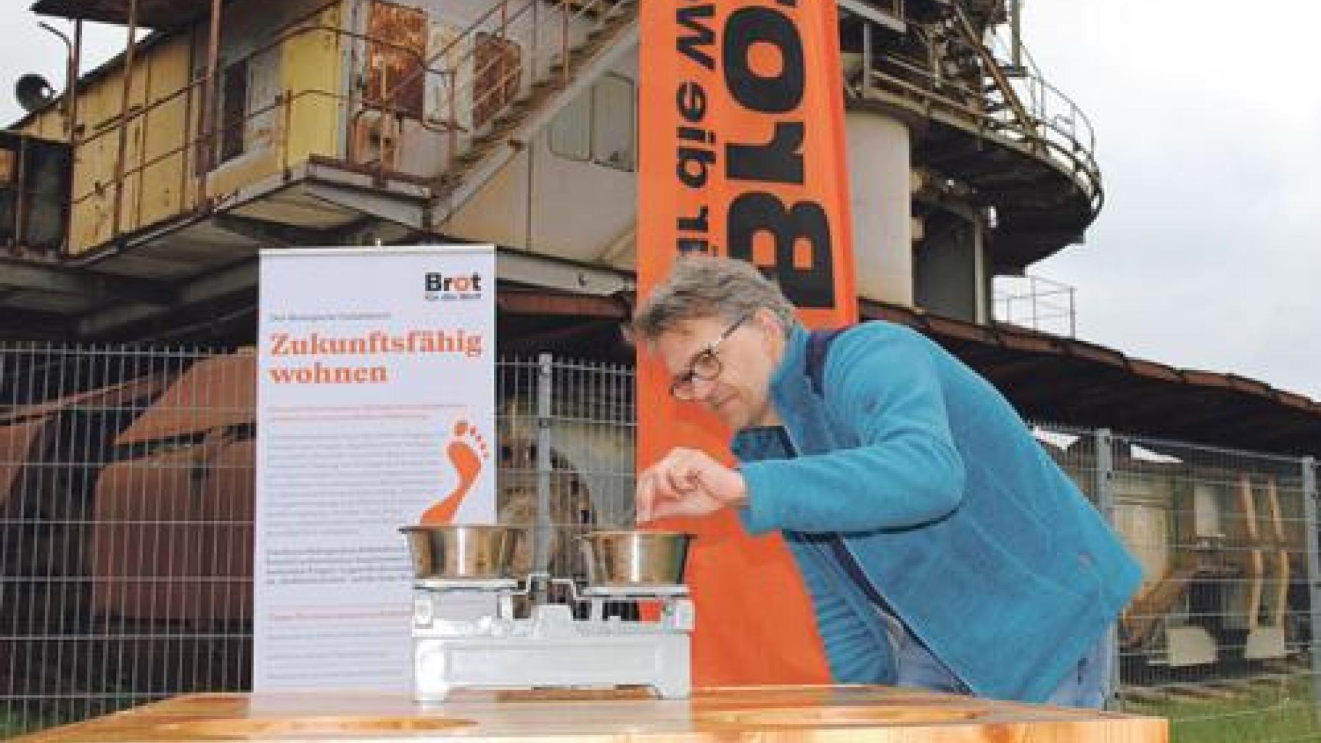 Familie Gwosch aus Dresden stand mit den zwei kleinen Kindern schon kurz nach sechs auf dem Bahnhof, um umweltfreundlich und pünktlich den Aktionstag zu erleben. Am Brot-für-die-Welt-Stand diskutierte die Familie am Mittag über ihren ökologischen Fußabdruck. „Wieviel Müll verursachen wir pro Woche? Wieviel Geld geben wir für Neuanschaffungen im Monat aus?“ Das waren nur zwei Fragen, denen sich die Familie stellte und ehrlich beantworten wollte.