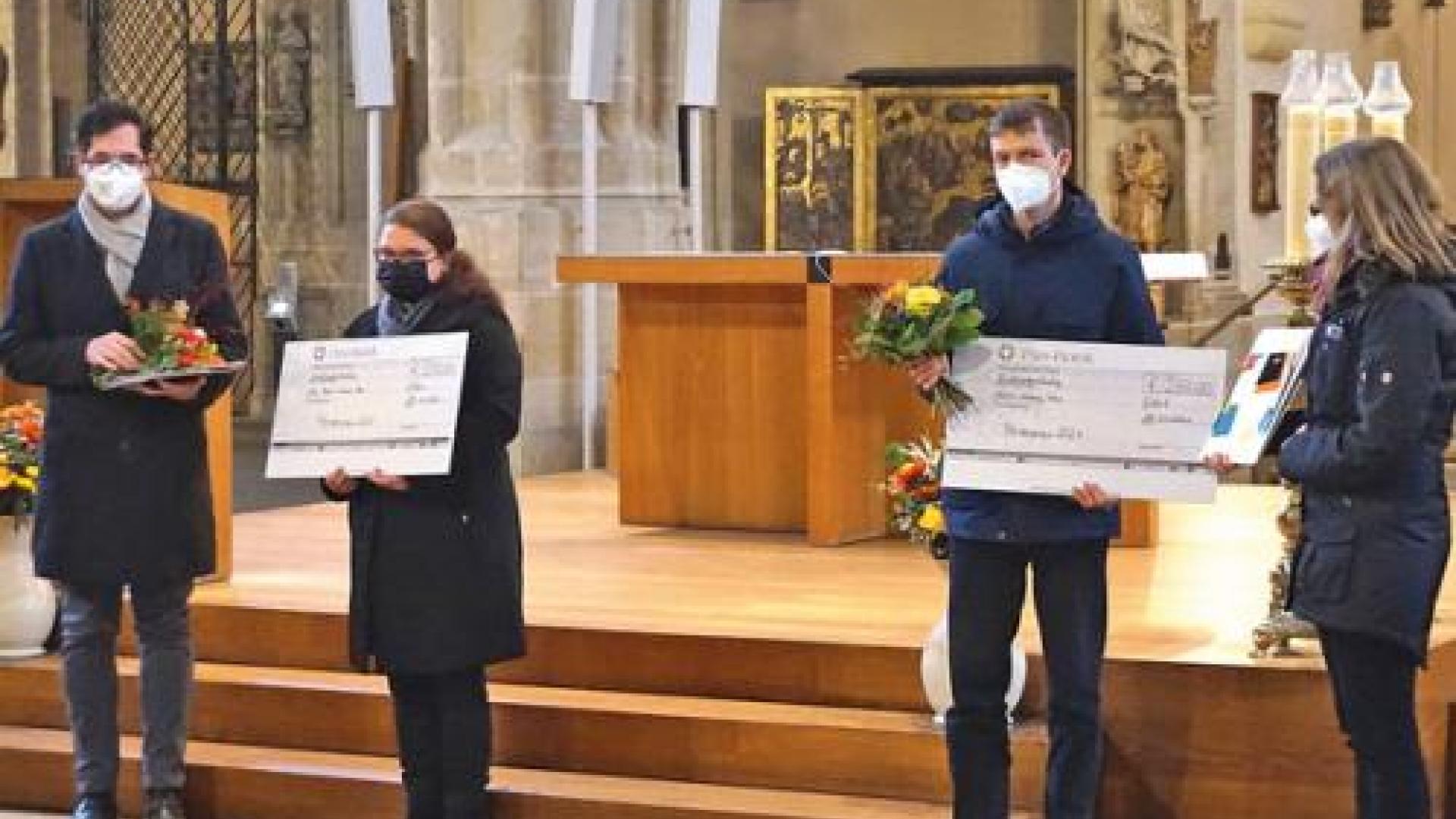 Der Förderpreis des Freundeskreises der Fakultät ging diesmal an die Verfasser zweier sehr unterschiedlicher, aber gleichermaßen bemerkenswerter Abschlussarbeiten: Paula Greiner-Bär hat in ihrer Magisterarbeit mit dem Titel „Wo ist der neugeborene König der Juden? (Mt 2,2). Orte und Räume in der matthäischen Kindheitserzählung“ analysiert. Diese Art der Textanalyse, die man eher aus dem Bereich der Literaturwissenschaft kennt, stellt neben der klassischen narrativen Analyse einen interessanten neuen Blickwinkel in der Auslegung der Evangelien dar. Auch in der Magisterarbeit des anderen Preisträgers, Ludwig Motz, geht es um Sprache, aber in einem anderen Kontext. Die Arbeit trägt den Titel „Polarisierungen verstehen. Eine exemplarische Analyse innerkirchlicher Konfliktthemen und deren argumentativer Grundlagen“ und beschäftigt sich mit der Frage, inwieweit bestimmte Arten zu argumentieren zur Polarisierung der Debatten innerhalb der Kirche beitragen. Als Vorsitzender des Freundeskreises überreichte Professor emeritus Michael Gabel den Förderpreisträgern ihre Urkunden.