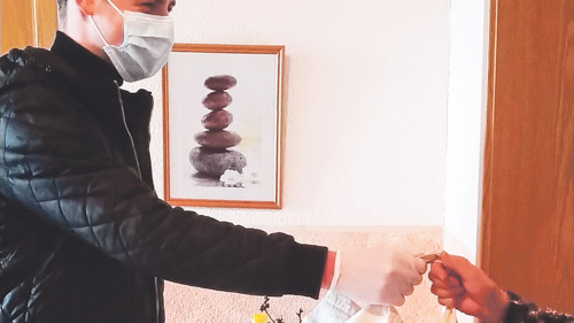 | Helfen mit Sicherheitsabstand. Der Eichsfelder Gymnasiast Henry Müller übergibt das Eingekaufte. Foto: Markus Könen |
