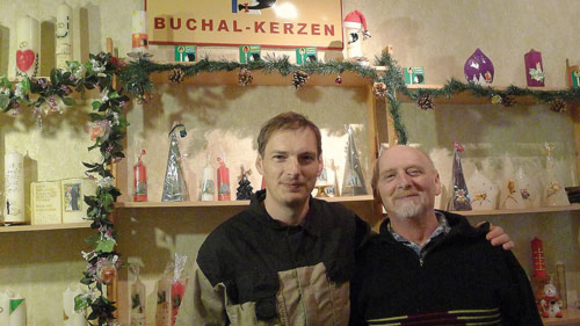 Menschen lieben Kerzenlicht, besonders in der dunklen Zeit. Es erleuchtet den Raum, wärmt Herz und Hand, schon seit dem zweiten Jahrhundert im alten Rom. Die Entwicklung des Christentums mit seinen liturgischen Bräuchen sorgte für die Verbreitung und Weiterentwicklung des Wachslichts. Bis ins vergangene Jahrhundert musste man die Lichter ständig „schneuzen“, also den abgebrannten Docht kürzen, um Rußen und Tropfen zu verringern. Seit der Nutzung von Paraffin und Stearin als Grundstoff und der entscheidenden Verbesserung des Dochts verschwanden die unangenehmen Eigenschaften der Kerzen bis zum heute unkomplizierten „Genuss“. Bei „Buchal“ wird klassisch aus Paraffin und Bienenwachs produziert, mehr als dreiviertel Handarbeit stecken in der Kerze. Paraffin ist zurzeit allerdings so teuer, dass man kaum noch Gewinn erzielen kann.