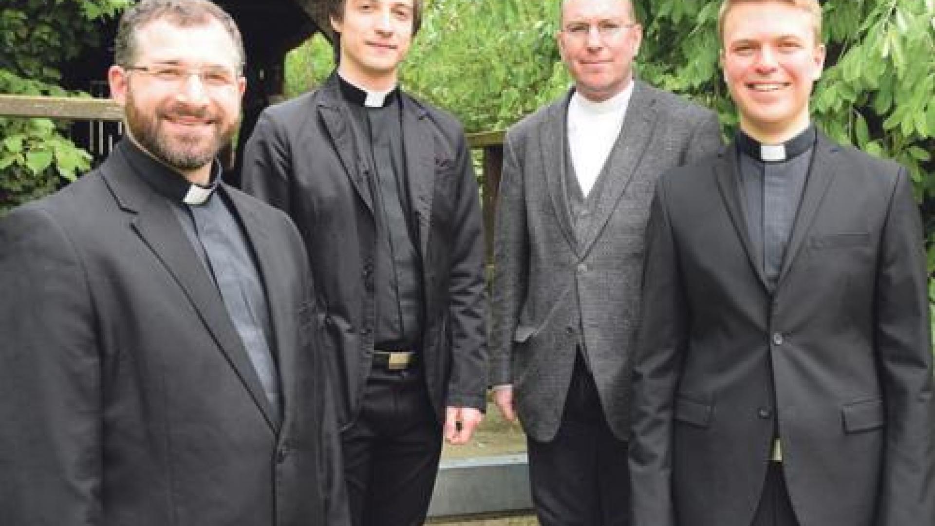 | Emanuele Cimbaro für das Erzbistum Berlin, Łukasz Puchała und Jens Bulisch für das Bistum Dresden-Meißen sowie Philip Theuermann für das Bistum Erfurt werden am Pfingstsamstag zu Priestern geweiht. (von links) | Fotos: Eckhard Pohl |