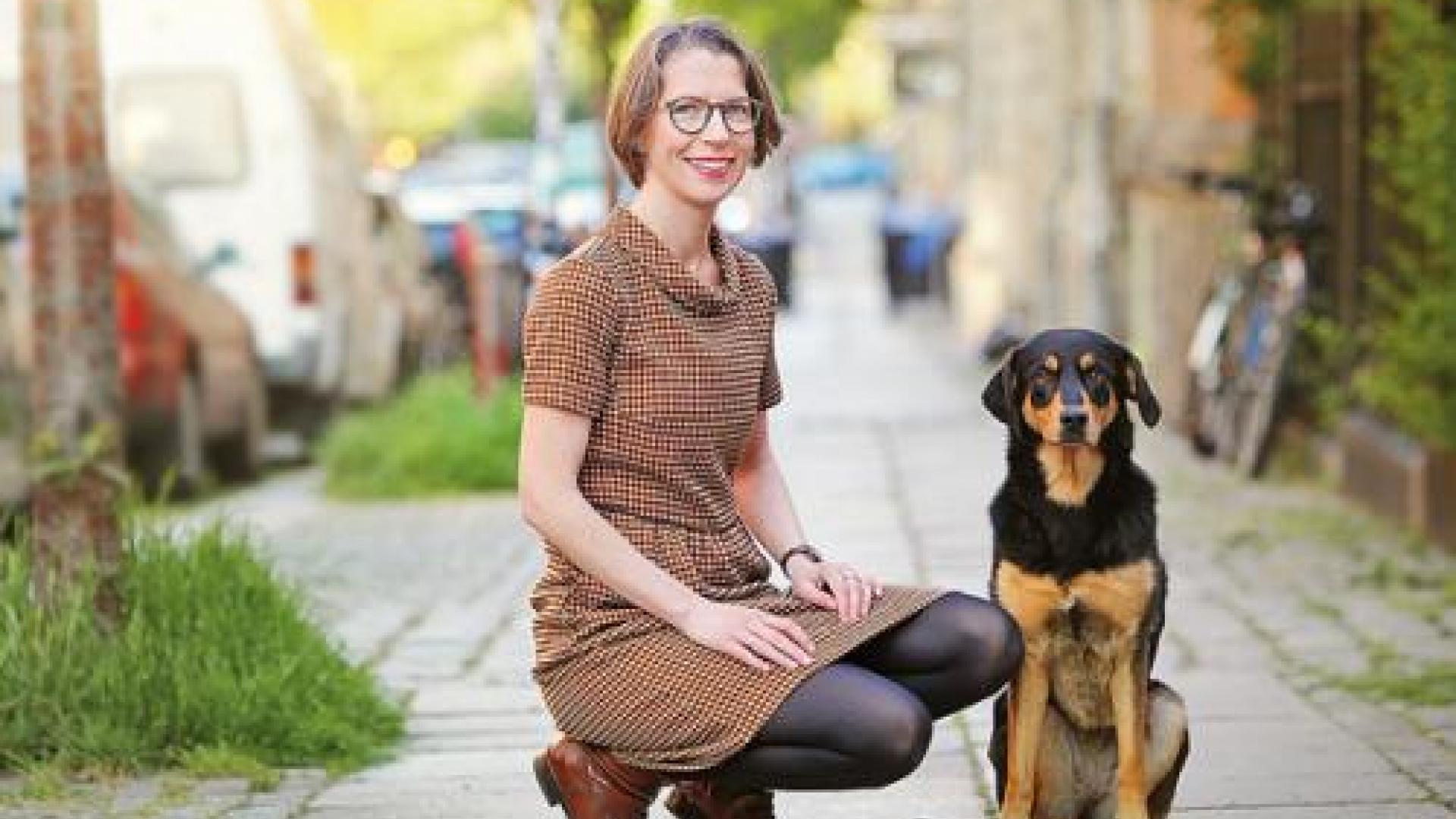 | Die Theologin Julia Enxing mit ihrer Hündin Lucy. Foto: Amac Garbe |