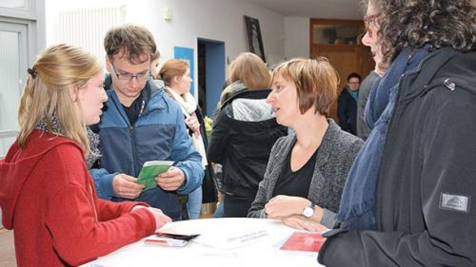 Junge Leute sprechen mit Religionslehrerin Katharina Frank und Gemeindereferenin Miriam Fricke. | Fotos: Eckhard Pohl