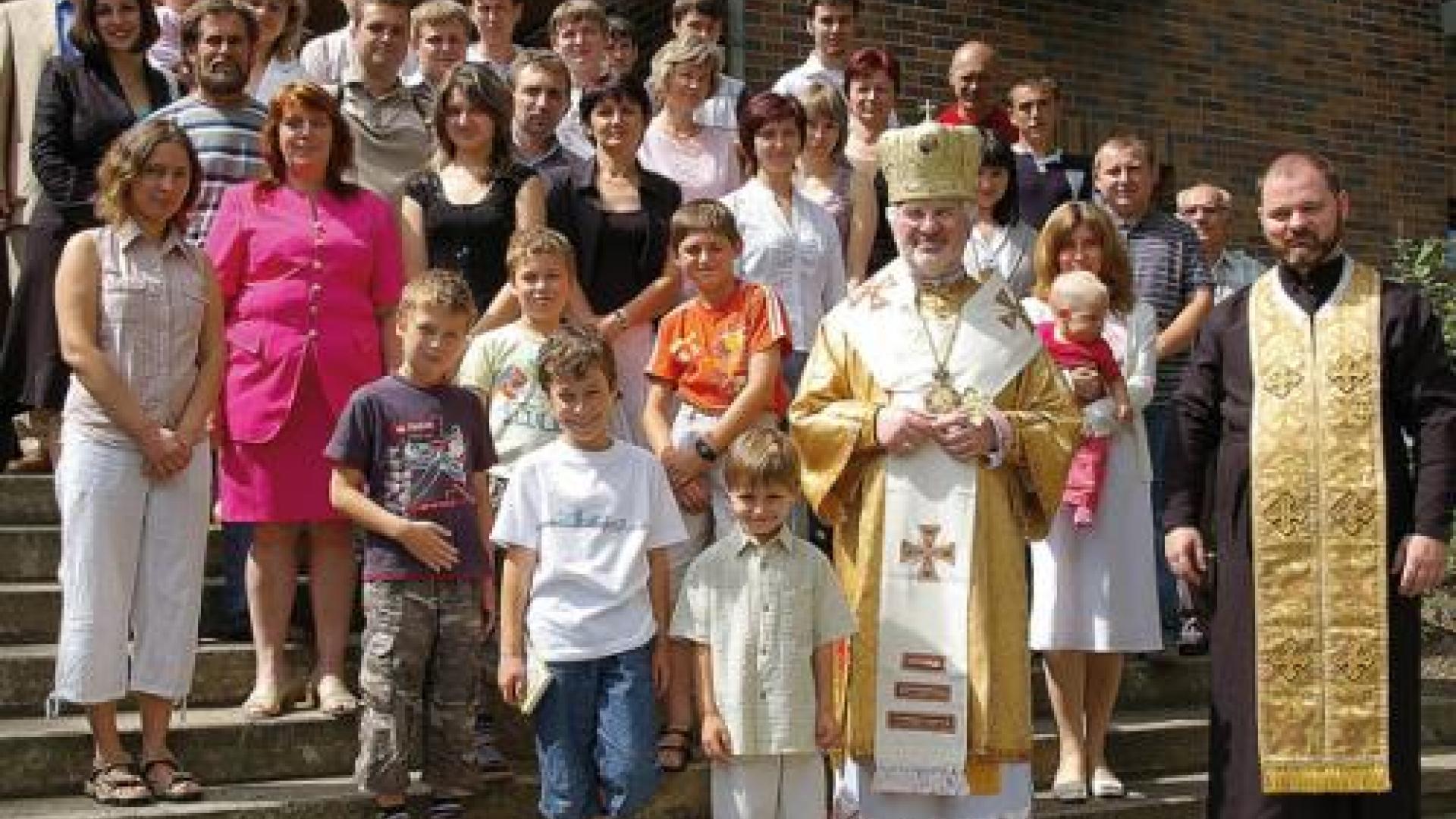 | Die Dresdner Gemeinde bei einem Besuch des Apostolischen Exarchen Bischof Petro Kryk vor einigen Jahren. Fotos: privat |