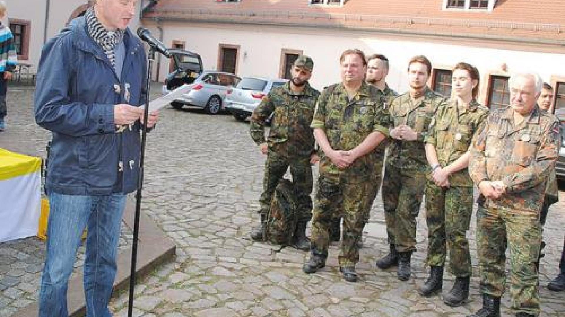 Solcherlei biblische Ratschläge mögen schon „Normalbürgern“ weltfremd erscheinen, umso provokanter müssen sie auf Soldatinnen und Soldaten wirken, die dafür ausgebildet sind, Feinde des Landes mit Waffengewalt abzuwehren. „Schieben Sie diese befremdlichen Gedanken nicht sofort beiseite. Nehmen Sie sich wenigstens einige Augenblicke, um sie auf sich wirken zu lassen, sie für sich in Betracht zu ziehen“, bat Stephan Lorek. 400 Jahre nach Ausbruch des 30-jährigen Krieges und 100 Jahre nach Beendigung des Ersten Weltkrieges sei es angebracht, über die Zerstörungskraft von Gewalt-Kreisläufen nachzudenken.