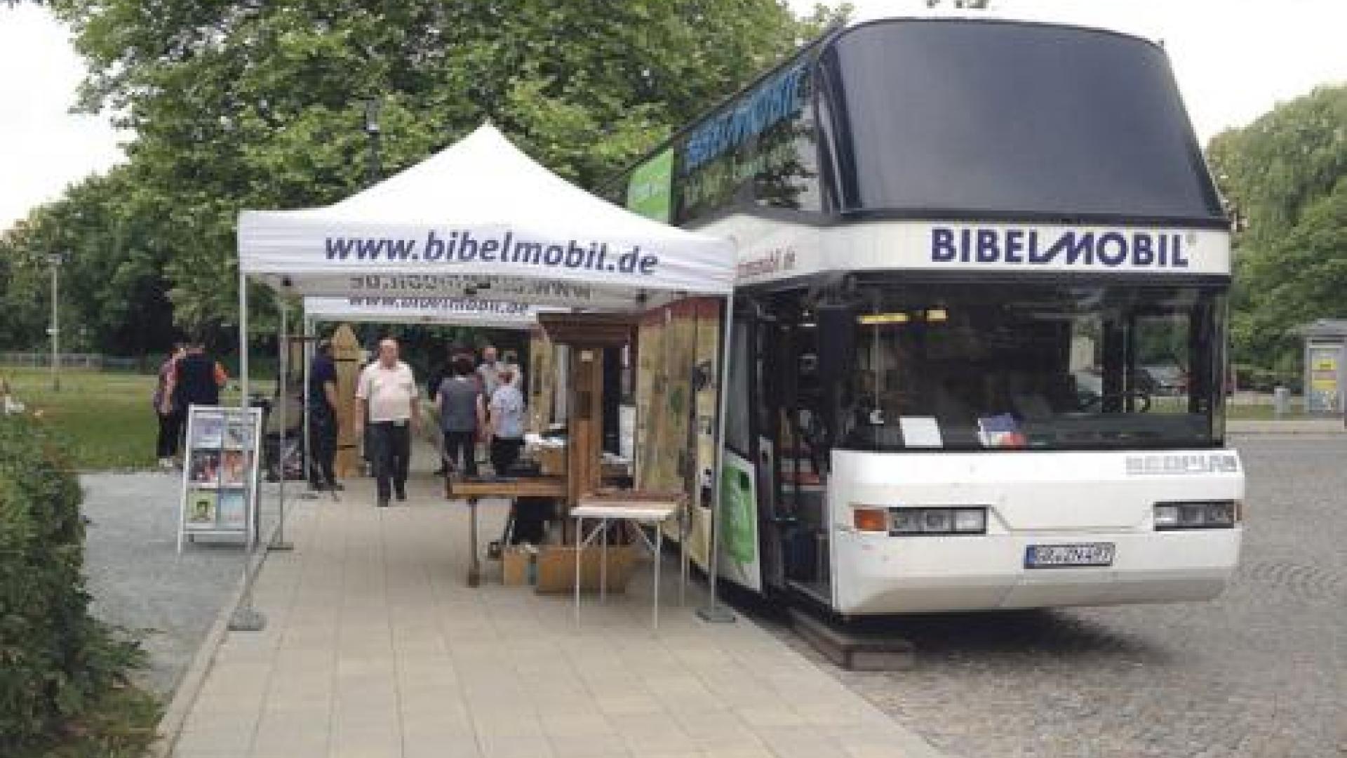 Als zeitlich befristetes ABM-Projekt ist das Bibelmobil entstanden. Zum Jahr der Bibel, im Februar 1992, fand die erste Fahrt statt. Andreas Schmidt steuerte den Bus mit Ulrich Idziaschek zum Theologen-Kongress in Hannover. „Der Zuspruch war stark. Das Bibelmobil weckte Neugier und Interesse“, erinnert er sich. Hans Zinnow, damals aktiv in der bundesweiten Arbeitsgemeinschaft Missionarische Dienste, gab den Anstoß. Er fand viele Partner. Ludwig Ammer, damals Direktor des Diakonischen Werkes der Evangelischen Kirche Schlesische Oberlausitz, unterstützte von Görlitz aus das Anliegen. „Das Bibelmobil sollte Gottes Wort ins Land tragen. Es sollte die Kirchengemeinden unterstützen. Auf Marktplätzen, in Fußgängerzonen, vor Supermärkten, auf Messen und anderswo sollte es nah bei den Menschen sein“, sagt Thomas Brendel, heute Vorsitzender des Trägervereins Bibelmobil. Dank des regen Zuspruchs führte die Berliner Bibelgesellschaft das Projekt weiter. Seit 1995 war das Bibelmobil integriert als fester Arbeitszweig der Evangelischen Hauptbibelgesell-schaft Berlin. „2005 wurde es ein Projekt der Föderation Evangelischer Kirchen in Mitteldeutschland“, so Thomas Brendel. „Die Finanzierung gelang durch eine große Zahl von Partnern aus der evangelischen und katholischen Kirche sowie durch viele Privatpersonen.“