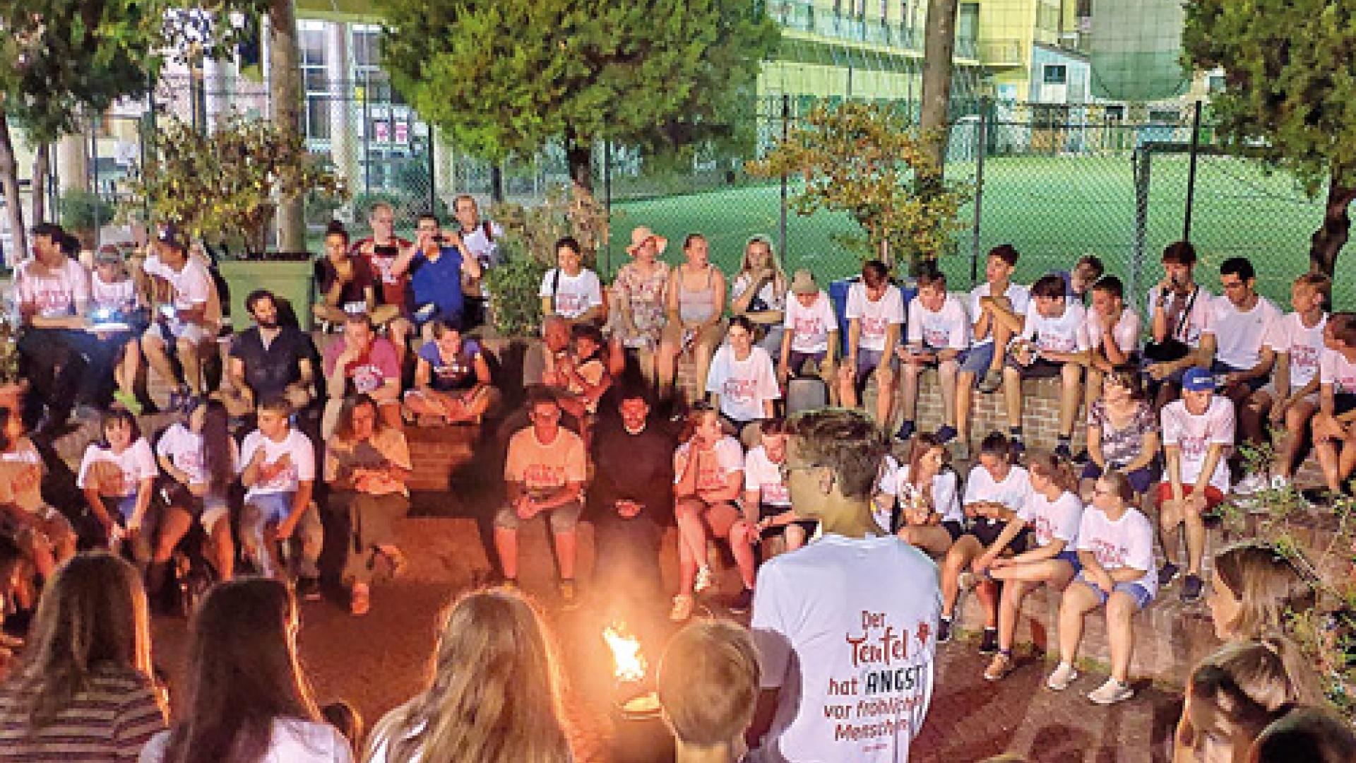 | Abendrunde während des Begegnungsfestes in Valdocco – ganz in der Tradition Don Boscos am Lagerfeuer. Foto: Julia Lehnert |