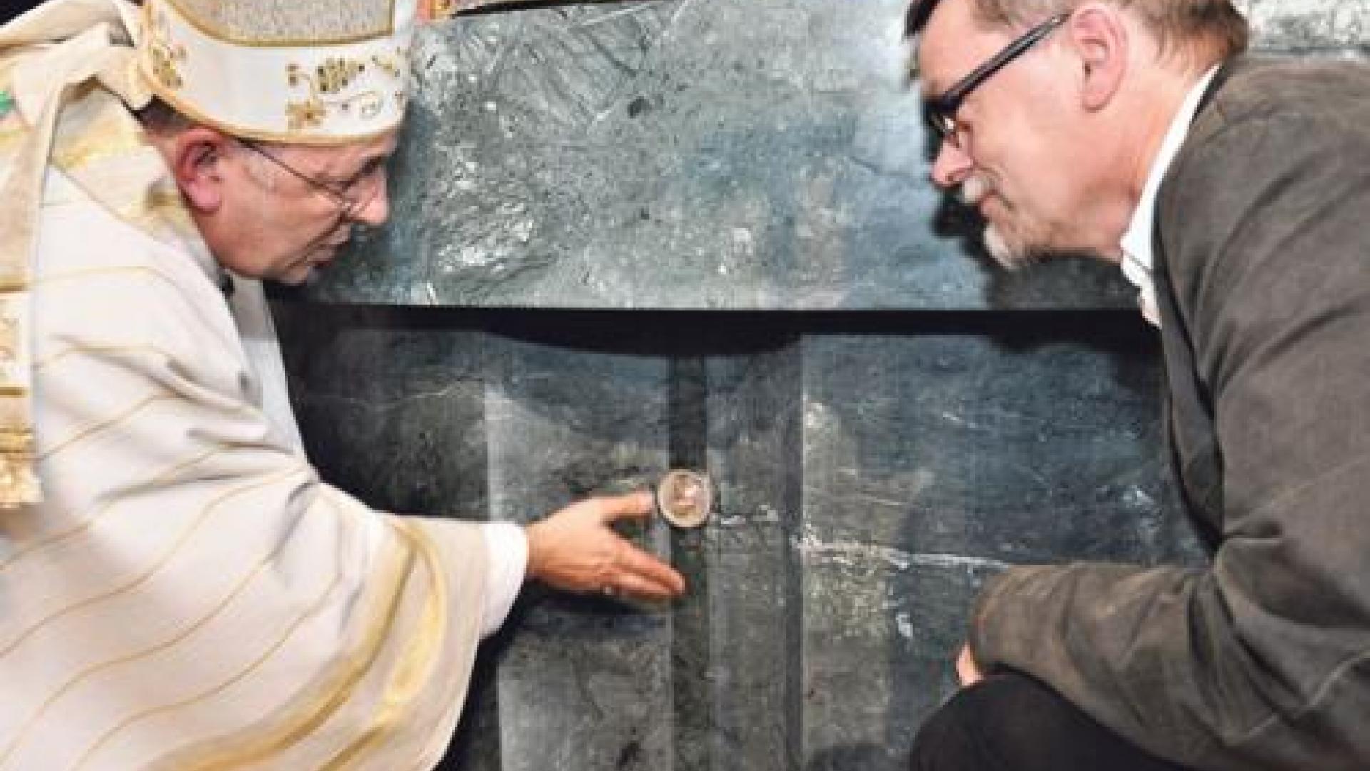 Ein weiteres großes Projekt war der Neubau des Zelebrationsaltars in der Stiftskirche Neuzelle. Viele Jahre stand dort ein einfacher Holzaltar, ein Provisorium, an das sich alle gewöhnt hatten. Der Architekt brauchte Geduld und Gespür für den hochbarocken Raum, um schließlich eine Lösung für Zelebrationsaltar, Ambo und Altarinsel zu finden.