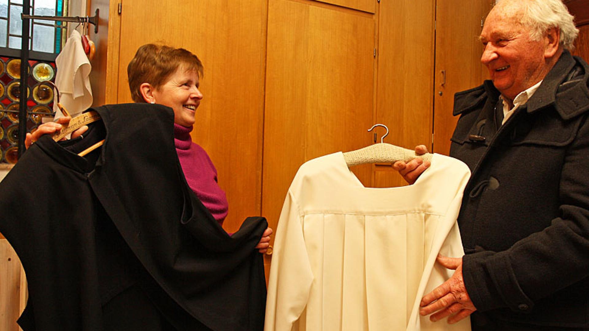 Als Dank für den Einsatz am Altar gibt es für die Seniorenmessdiener und ihre Partnerinnen sowie für die Werktagslektoren ein gemeinsames Frühstück. „Das ist eine schöne Sache, weil man dann auch mal andere aus der Gruppe näher kennenlernen kann“, weiß Erich Menkhaus aus Erfahrung. Er selber will mit seinen 83 Jahren nun aufhören. Zusammen mit zwei anderen aus der Truppe. Für Margarete Hörnschemeyer kein Grund, nervös zu werden. Durch ihren Job als langjährige Küsterin ist sie in der Gemeinde bestens vernetzt. „Ich habe da schon einige im Auge, die ich demnächst mal fragen werde, ob sie nicht auch Seniorenmessdiener werden wollen.“