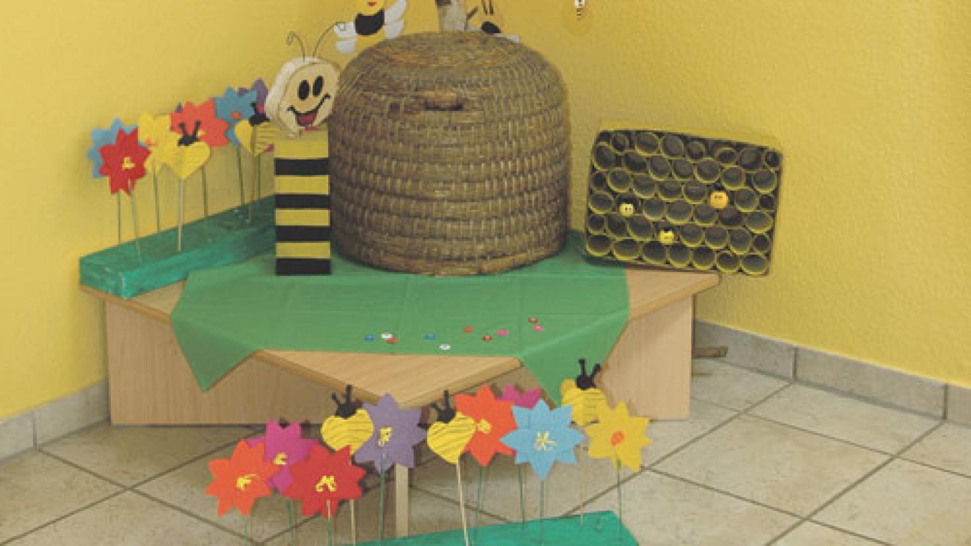 | Überall im Kindergarten, in den Gruppenräumen, Fluren und im Treppenhaus wird das Bienenprojekt lebendig. Foto: Christine Bose |