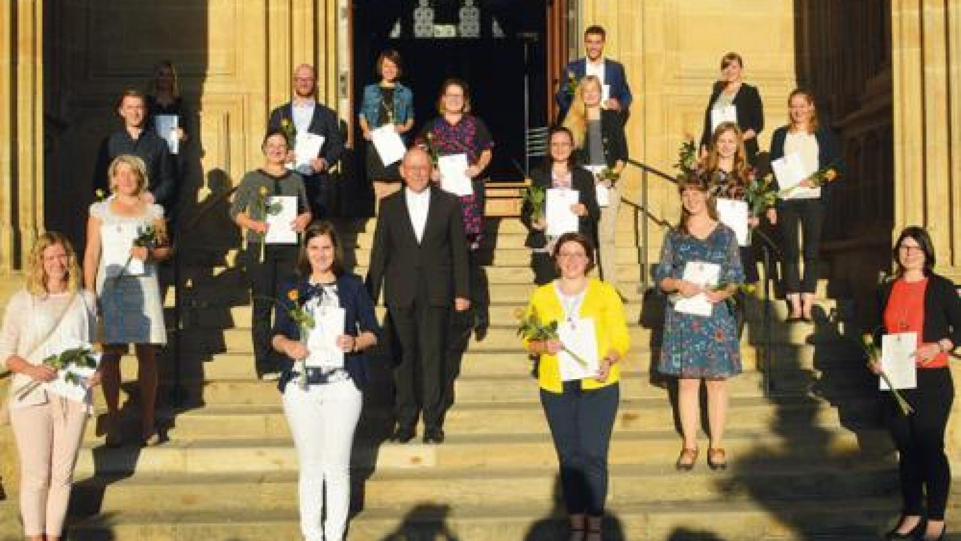 Insgesamt erteilte Ulrich Neymeyr an 17 Frauen und sechs Männer am Abend des 18. September die kirchliche Lehrbeauftragung für den katholischen Religionsunterricht an allgemeinbildenden Schulen in Thüringen. Die Lehrer unterrichten in Erfurt, Gebesee, Weimar und im Eichsfeld. Vor der Übergabe unterrichteten die Lehrerinnen und Lehrer mit einer vorläufigen Erlaubnis.