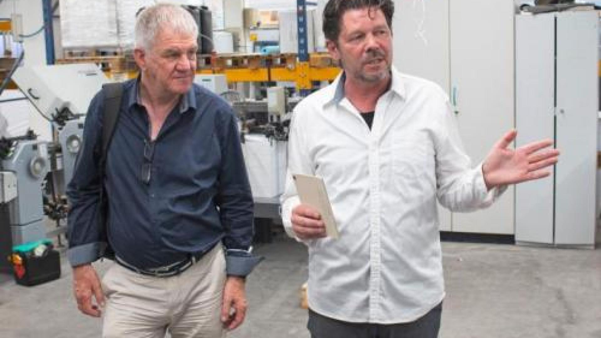 Zusammen mit Claus Everdiking, Leiter des Referats Mediengestaltung, und Mitarbeitern der Abteilung Medien erkundigte er sich in einer Ortsbesichtigung, wie nachhaltiges Drucken geht.