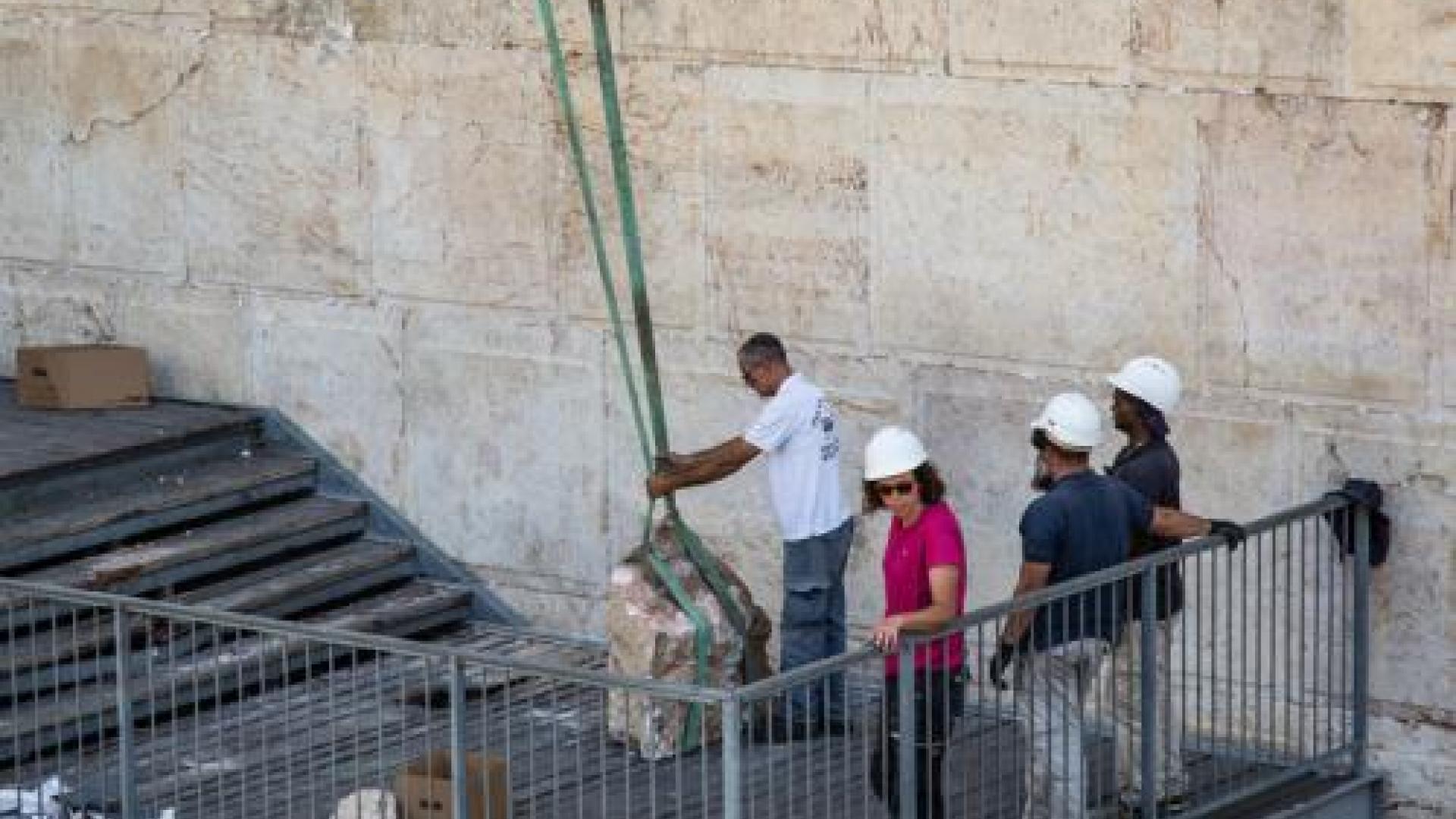 An der Klagemauer in der Jerusalemer Altstadt bot sich in diesen Tagen ein ungewohntes Bild: Meterhoch, über den Köpfen von Archäologen, Betern und Schaulustigen schwebte ein gewaltiger Stein. Mit einem Kran, gesichert von zwei Seilen, bargen Experten den rund 100 Kilogramm schweren Block. Der Stein, der über 2.000 Jahre hinweg unbeweglicher Teil der herodianischen Tempelmauer war, hatte sich am Montag gelöst und war nur knapp neben eine betende Frau gestürzt.