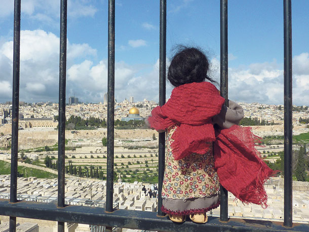 | Religionslehrerin Annett Kirsch ist mit der Biblischen Erzählfigur Miriam ins Heilige Land gereist und hat sie an wichtigen biblischen Orten platziert. Sinnbildlich waren so auch ihre Schüler, denen Miriam vertraut ist, mit in Israel. Foto: Annett Kirsch |