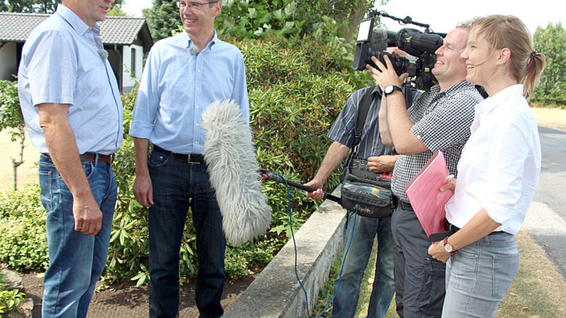 Auch bei den Dreharbeiten mit dem Norddeutschen Rundfunk (NDR), für die Reporterin Annette Deutskens mit Kamera- und Tonmann angereist ist. „Plattdeutsch? Vielleicht müssen wir dann Untertitel machen“, wird in der Runde nicht ganz ernst gemeint gescherzt. Das Team produziert einen kurzen Film, der wenige Tage vor der Bischofsweihe in dem Magazin „Hallo Niedersachsen“ gezeigt wird – mit Szenen auch aus dem Gymnasium Leoninum in Handrup, das Wilmer fast zehn Jahre geleitet hat, und von dem elterlichen Bauernhof. Geduldig, entspannt und mit viel Humor folgen Theo und Heiner Wilmer den Bitten der NDR-Mitarbeiter – wechseln sogar einmal die Oberhemden, weil die kleinen Karos in der Kamera flirren. Der Neffe leiht Onkel Heiner fix ein anderes.