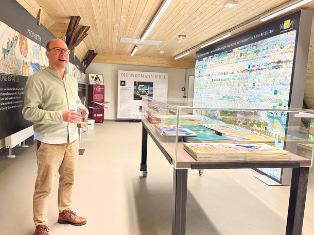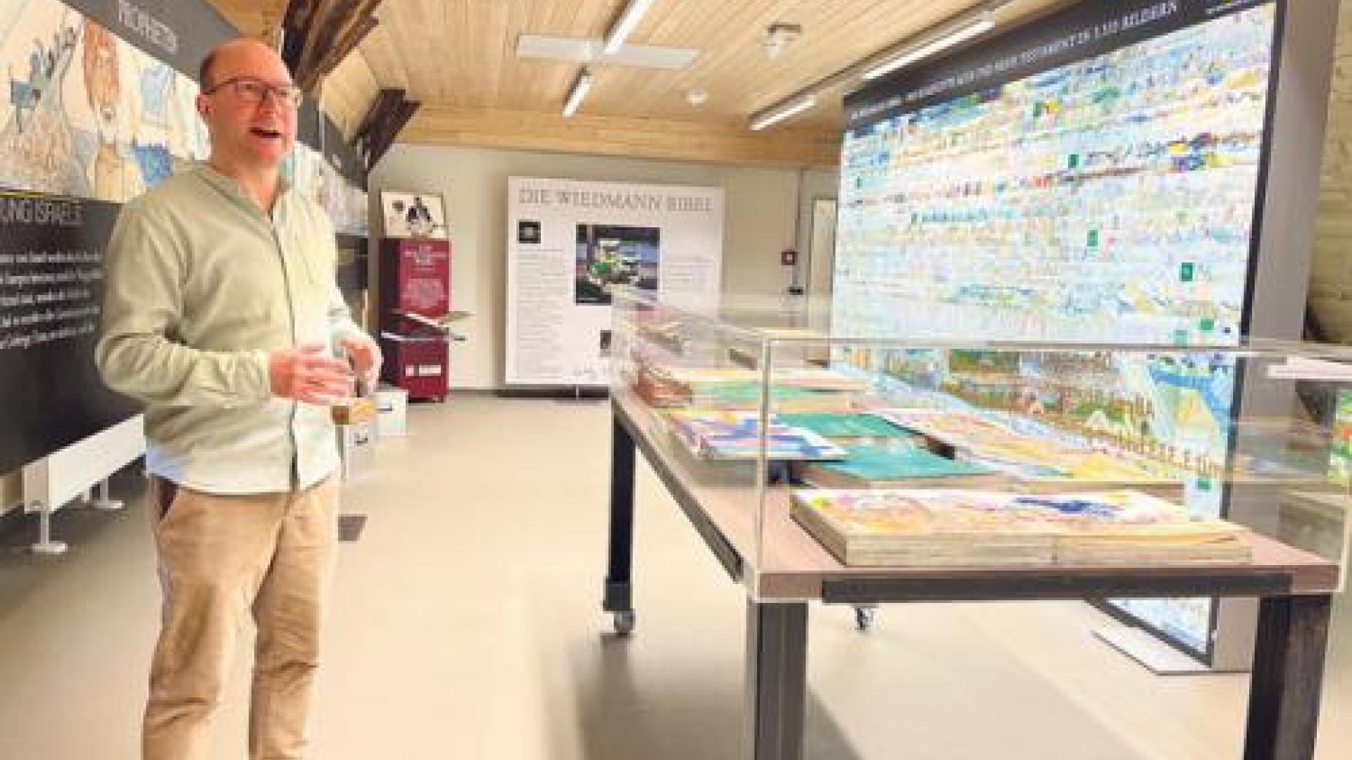 | Pfarrer Sven Hanson führt gern durch die Ausstellung, die im Canstein Bibelzentrum zu sehen ist. Fotos: Claudia Crodel |