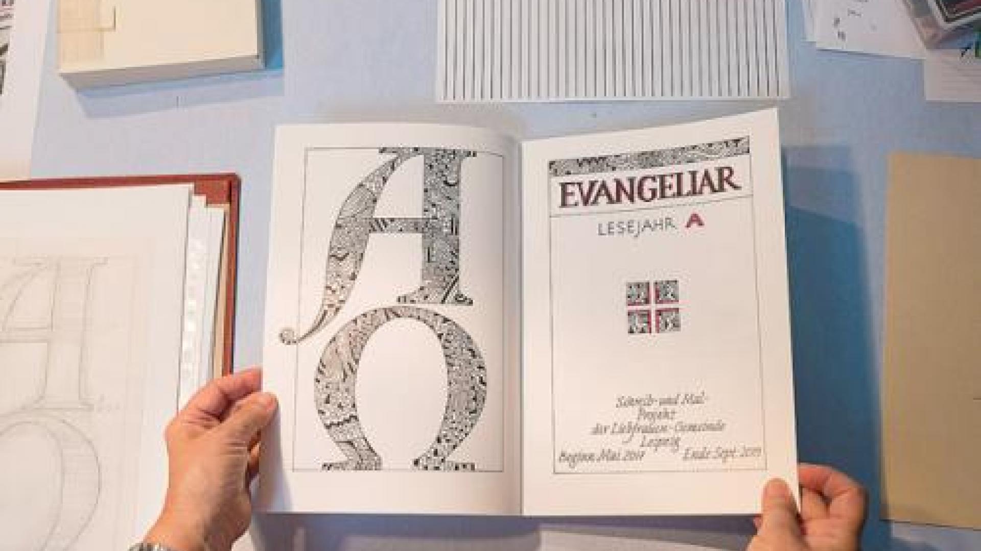 | Handwerkliches Geschick als Buchbinderin und künstlerisches Talent als Grafikerin hat Angelika Pohler bei der Fertigstellung des Evangeliars eingebracht. |