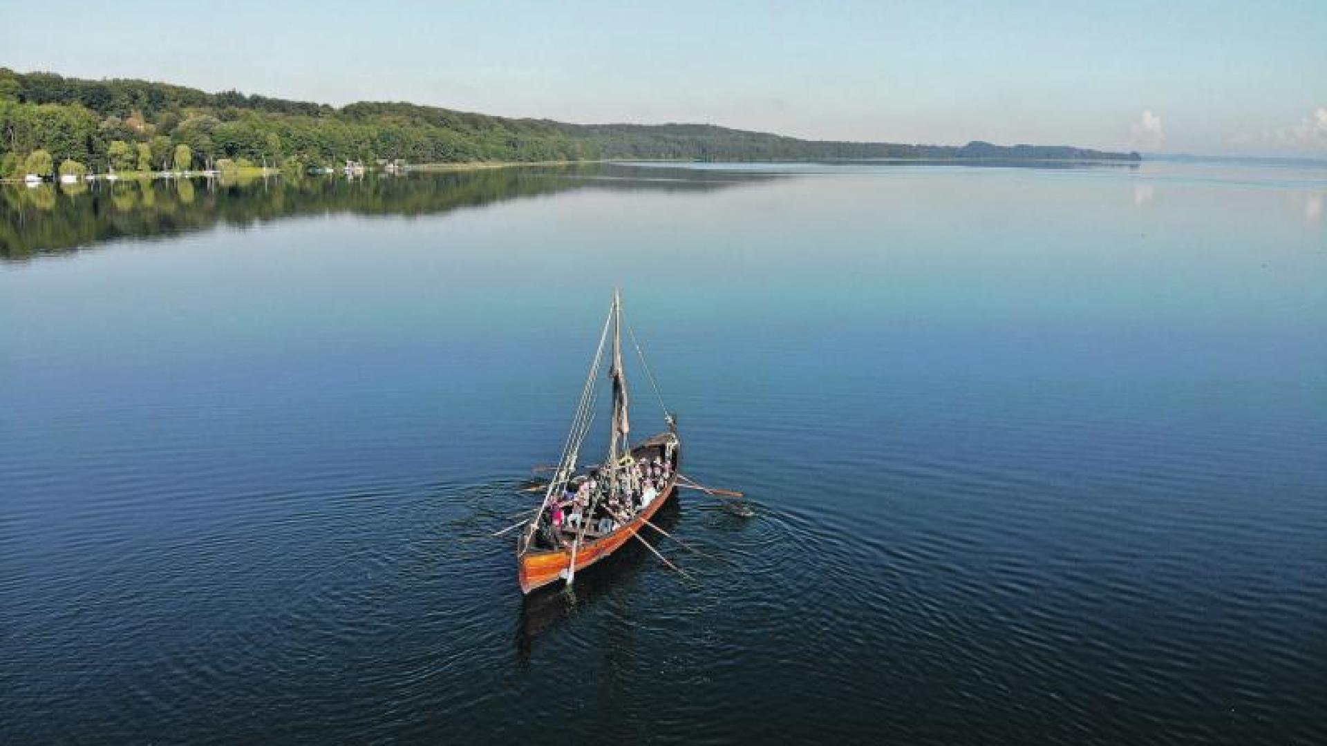 Aus vielen Ecken des Erzbistums waren die rund 300 Pilger nach Einhaus bei Ratzeburg zum Ans­veruskreuz gekommen, um an der 66. Ansverus-Wallfahrt unter dem Motto „Glauben in Freiheit“ zu teilzunehmen. Auf ganz unterschiedlichen Pilgerrouten, per Fahrrad und zu Fuß ging es zur Festwiese. Für die Kinder war erneut ein besonders abenteuerlicher Weg vorbereitet worden: Sie fuhren mit einem Wikinger­schiff über den Ratzeburger See bis zur Himmelswiese, um anschließend den Rest des Weges per Schnitzeljagd zum Kreuz zu gelangen. Nach Ankunft der einzelnen Gruppen segnete Erzbischof Stefan Heße Brote in Form des Ansveruskreuzes. Sie Boot auf dem Ratzeburger See waren am frühen Morgen im Don Bosco-Haus in Mölln gebacken worden.