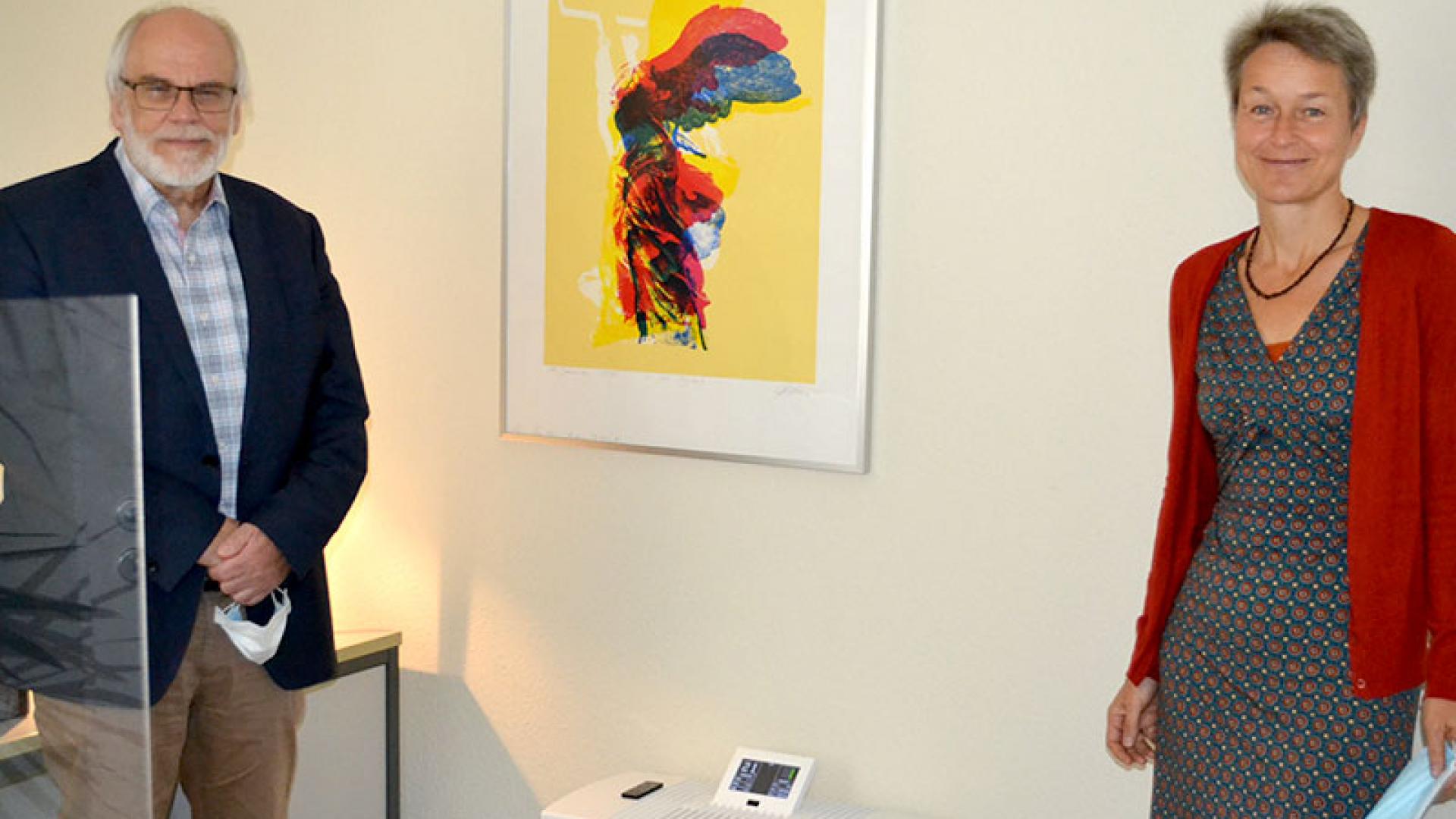 „Als die persönliche Beratung wieder losging, habe ich mir eine Glasscheibe ins Sprechzimmer gestellt“, sagt Pater Hans-Albert ganz pragmatisch. Außerdem setzt er auf moderne Technik: „Ich habe jetzt auch einen Luftreiniger. In einer Stunde reinigt er zweimal die Luft und reduziert so die Luftreinigungsmittel.“