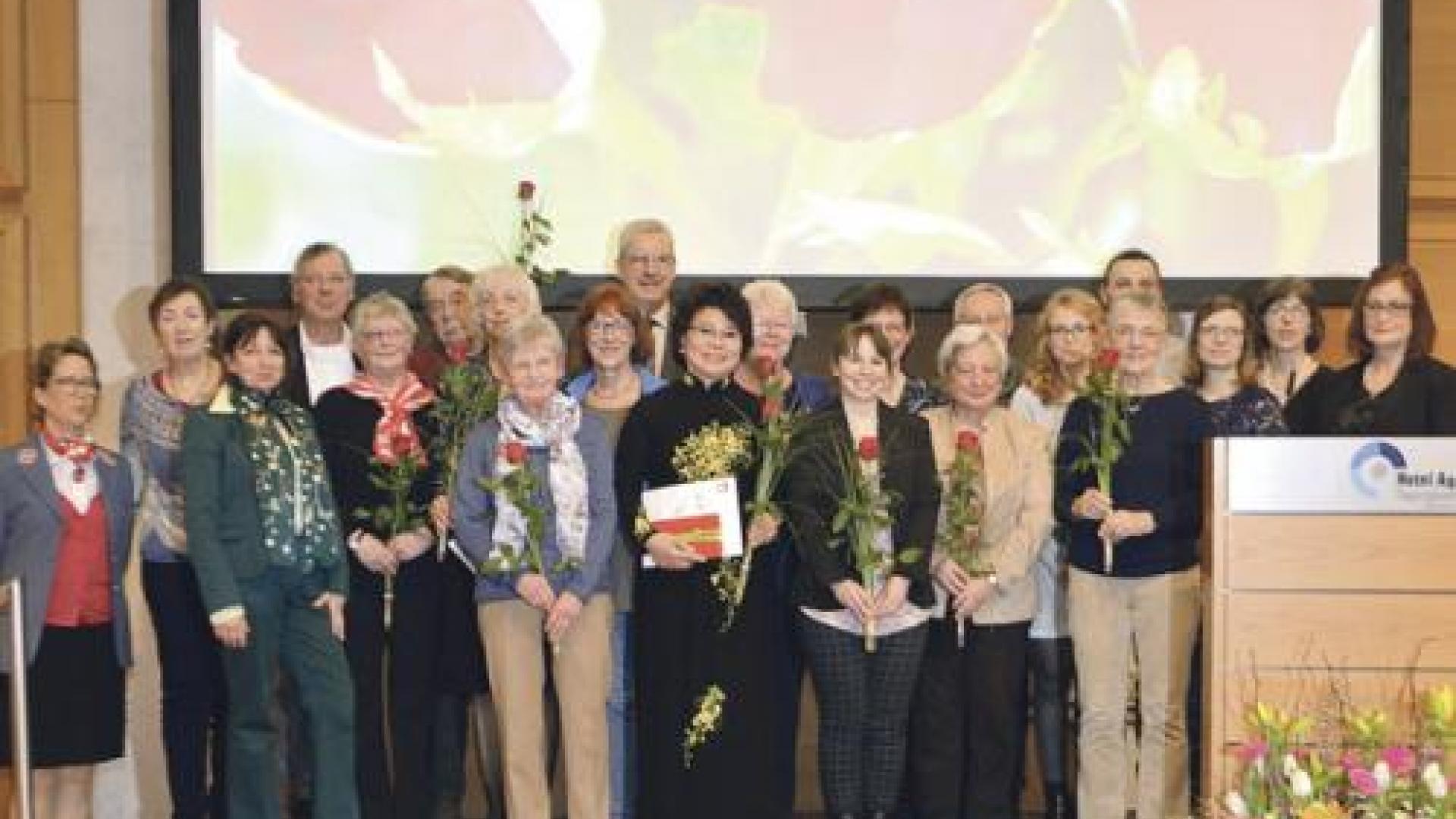 Bahnhofsmission, Hospizdienst, Beratung von Ausländern, Kinder- und Jugendhilfe – es gibt fast keinen Bereich karitativer Arbeit, bei dem nicht die Mitarbeit von Ehrenamtlichen wichtig ist. Nur mit ihrer Unterstützung kann der Caritasverband in Berlin seine vielfältigen Angebote aufrechterhalten. Das zeigte sich im Rahmen der Veranstaltung, bei der verdiente ehrenamtliche Mitarbeiter wie Thi Thu Van Feistel auszeichnet wurden. Insgesamt zehn Ehrenamtliche wurden geehrt. Sie erhielten das Caritas-Ehrenzeichen in Gold beziehungsweise Silber oder die Ehrenurkunde. Außerdem wurde die Mitarbeit von zwei Jugendlichen gewürdigt.