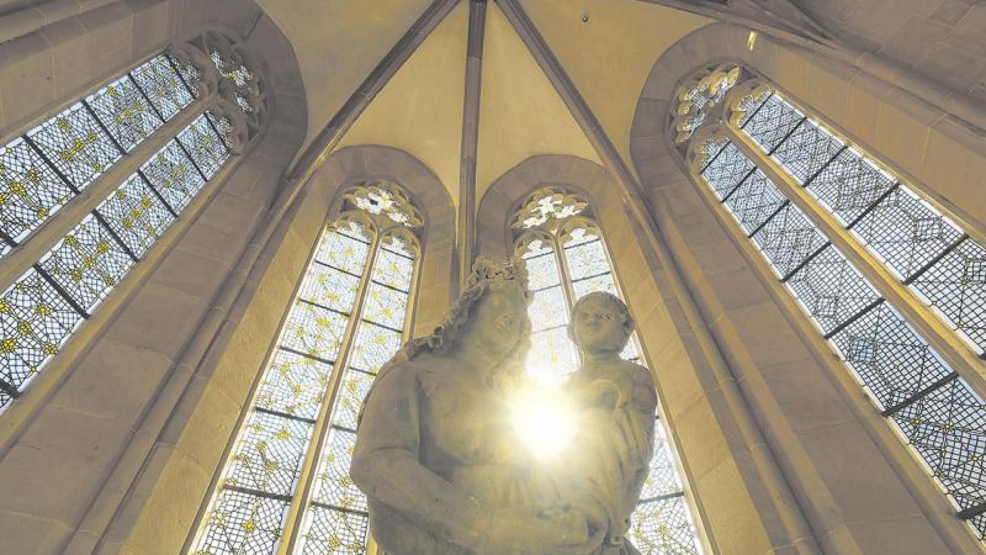 Auch den Fußboden hat man erneuert, er ist aus hellem Sandstein und im gleichen Farbton gehalten wie im Dom und im angrenzenden Dommuseum. Ein zartes Lichtband konturiert den Boden und sorgt für eigene Akzente im Raum, auch die Skulptur der Muttergottes mit dem Jesuskind aus dem späten 13. Jahrhundert, die ursprünglich in der Hildesheimer Heilig-Kreuz-Kirche ihren Platz hatte und etwas älter ist als die Annenkapelle selbst, wird durch die dezente Lichtregie neu in Szene gesetzt. „Die kleine Kapelle soll wie eine Laterne auf dem Friedhof leuchten. Als Zeichen der Hoffnung und Zuversicht in einer Welt, die auseinanderfällt, das gilt für den politischen Bereich ebenso wie für die Kirche“, bemerkt Weihbischof Heinz-Günter Bongartz, der zum Vorstand des Dombauvereins gehört. Und er verweist auf die drei farbigen Schlusssteine im Gewölbe, in denen Phönix, Pelikan und Löwe dargestellt sind, die christlichen Symbole für Barmherzigkeit und Auferstehung.