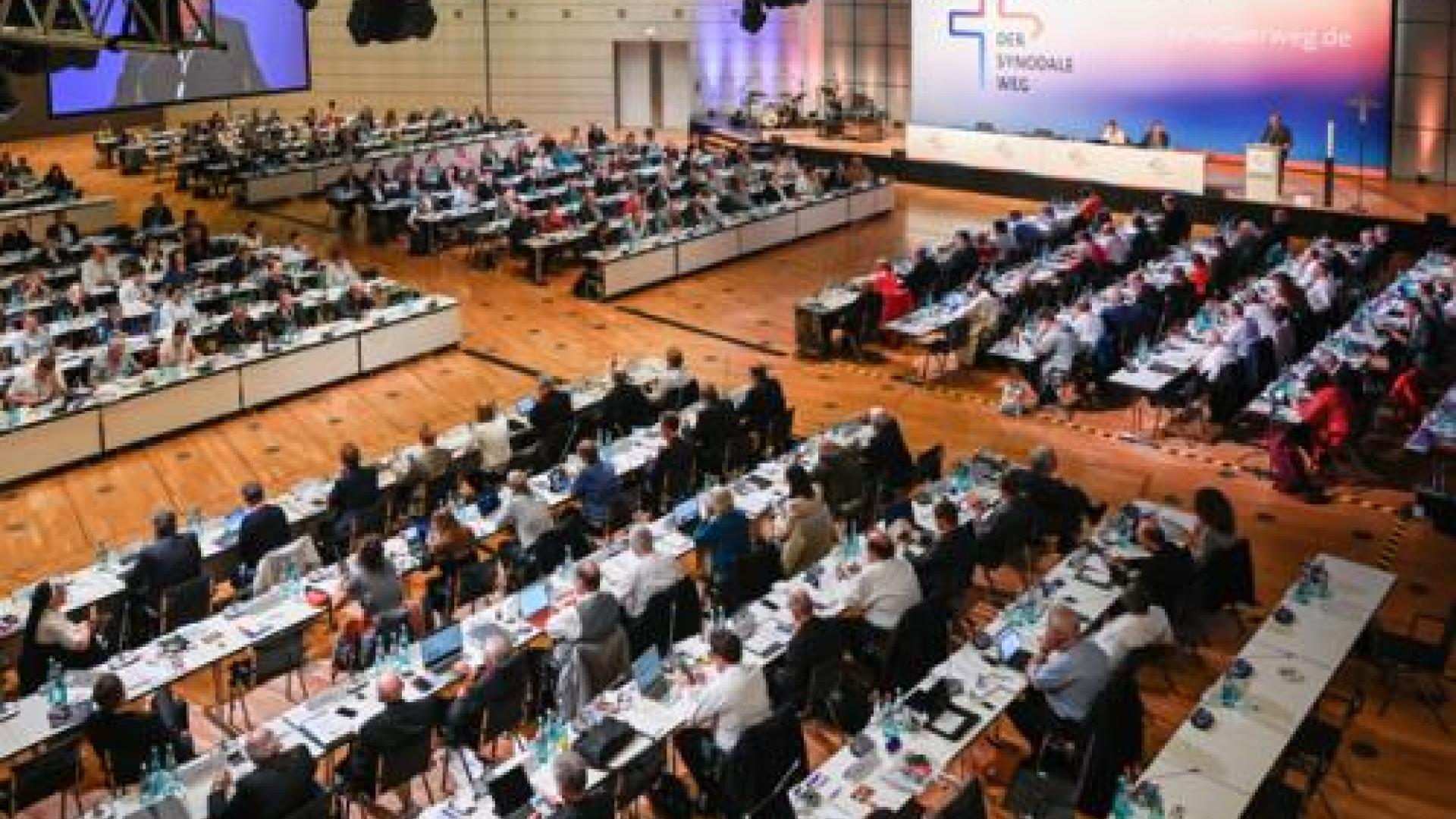 | Blick in den Sitzungssaal der vierten Synodalversammlung in Frankfurt. Foto: kna/Julia Steinbrecht |