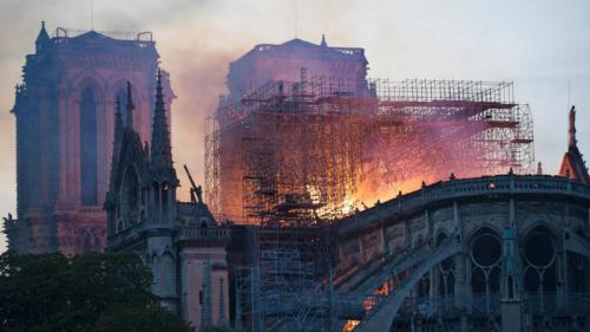 Das Feuer war am Montagabend ausgebrochen, Flammen und meterhohe Rauchwolken standen über dem Hauptschiff. Der gesamte Dachbereich brannte. Wie es zu dem Brand kam, wird derzeit untersucht. Möglich ist ein Zusammenhang mit Renovierungsarbeiten am Dachstuhl. Der 96 Meter hohe hölzerne Vierungsturm aus dem 13. Jahrhundert brannte aus und stürzte ein. Frankreichs Präsident Emmanuel Macron sagte einen Wiederaufbau von Notre-Dame zu.