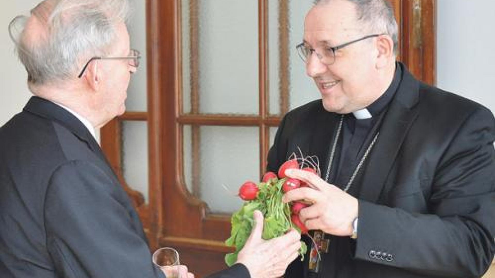 In seiner Ansprache appellierte er, sich mehr Zeit für andere Menschen zu nehmen und seine Interessen, die eigenen Bedürfnisse, in den Hintergrund zu stellen, um diese Zeit seinem Mitmenschen zu widmen. Im Anschluss an den Gottesdienst nutzten Gläubige und Priester die Gelegenheit, dem Jubilar zu gratulieren. Unter ihnen befanden sich unter anderem auch Siegfried Deinege (Oberbürgermeister der Stadt Görlitz), Generalsuperintendentin Theresa Rinecker, Caritasdirektor Bernhard Mones, Schwester Jutta (Oberin des Görlitzer Konventes der Borromäerinnen) und einige ihrer Mitschwestern. Der Bischof hatte darum gebeten, auf persönliche Geschenke zu verzichten und stattdessen etwas für die Innensanierung der Kathedrale zu spenden. Dafür war eine „Schatztruhe“ aufgestellt, in deren Deckel ein Foto – eine Innenaufnahme dieses Gotteshauses – zu sehen war. Dennoch konnte sich Bischof Ipolt über das eine oder andere Geschenk freuen. Die vermutlich ungewöhnlichste Gabe überreichte Domkapitular em. Herbert Pollack: Er schenkte dem Bischof ein Bund Radieschen und sagte dazu: „Die roten Früchte haben mich an einen schönen Blumenstrauß erinnert und haben mich auf dem Markt angelacht; da konnte ich nicht widerstehen.“