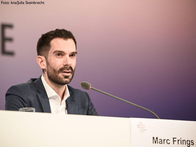 Frings hob die Initiative #OutInChurch hervor, in deren Rahmen sich im Januar rund 125 Mitarbeitende und Mitglieder der katholischen Kirche öffentlich als queer geoutet hatten, also etwa als homosexuell oder transgender. Die Initiative hat aus Sicht des ZdK-Generalsekretärs "den Diskurs in der deutschen Ortskirche zusätzlich dynamisiert".