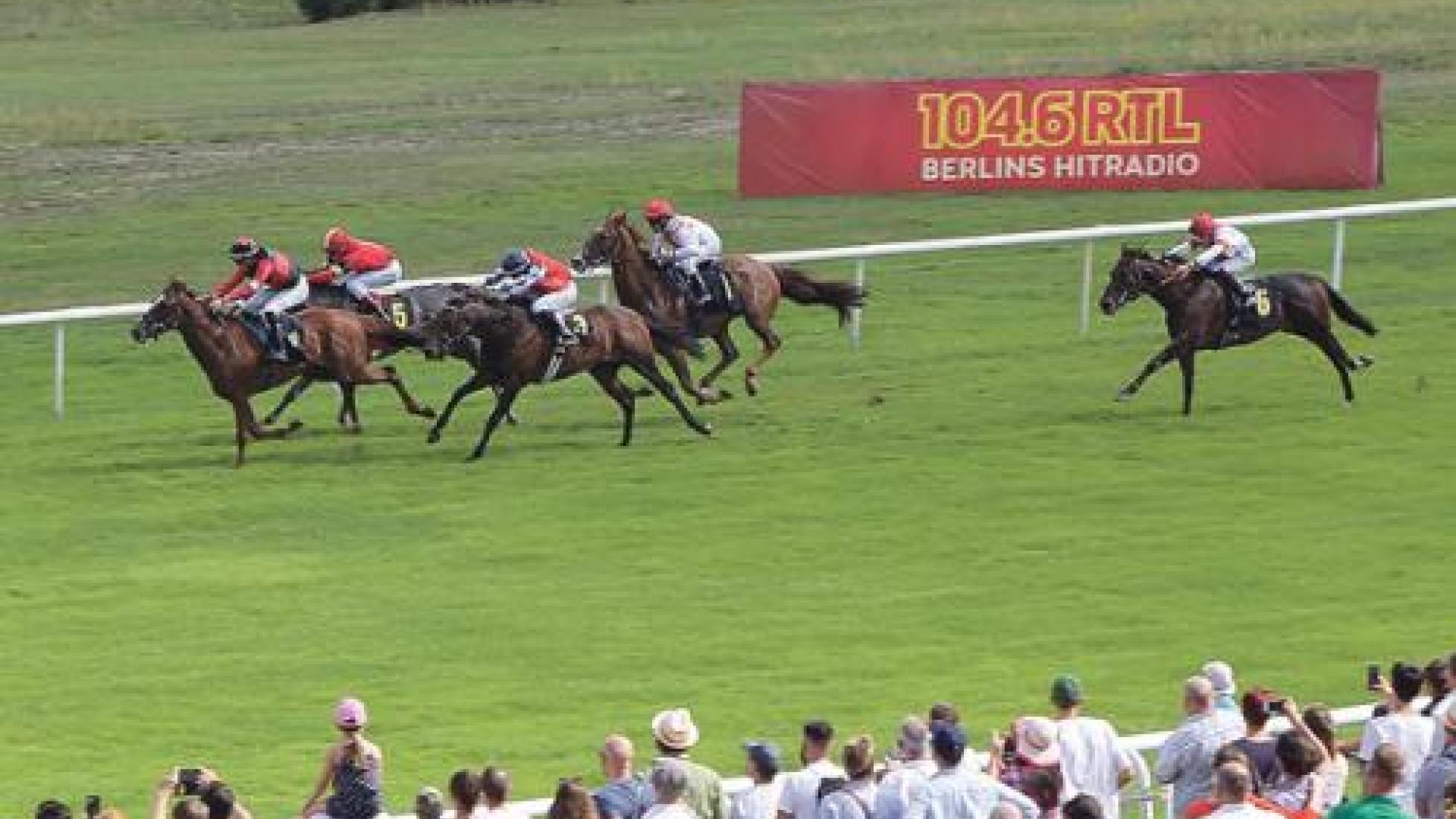 | Zieleinlauf des Klausener-Rennens auf der Berliner Galopprennbahn. Foto: Werner Sygnecki |