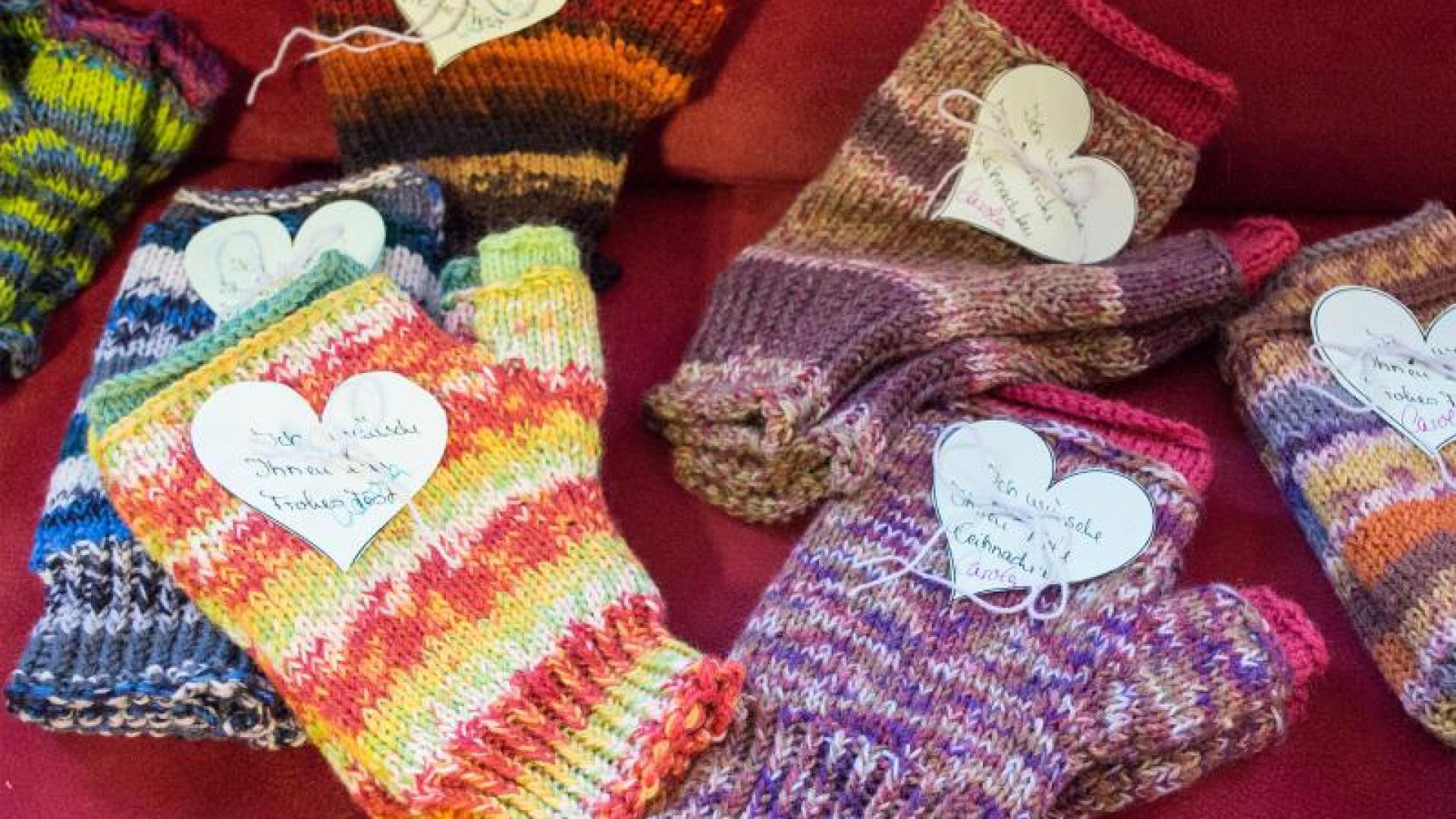 Handgemachte Wollstulpen für Obdachlose