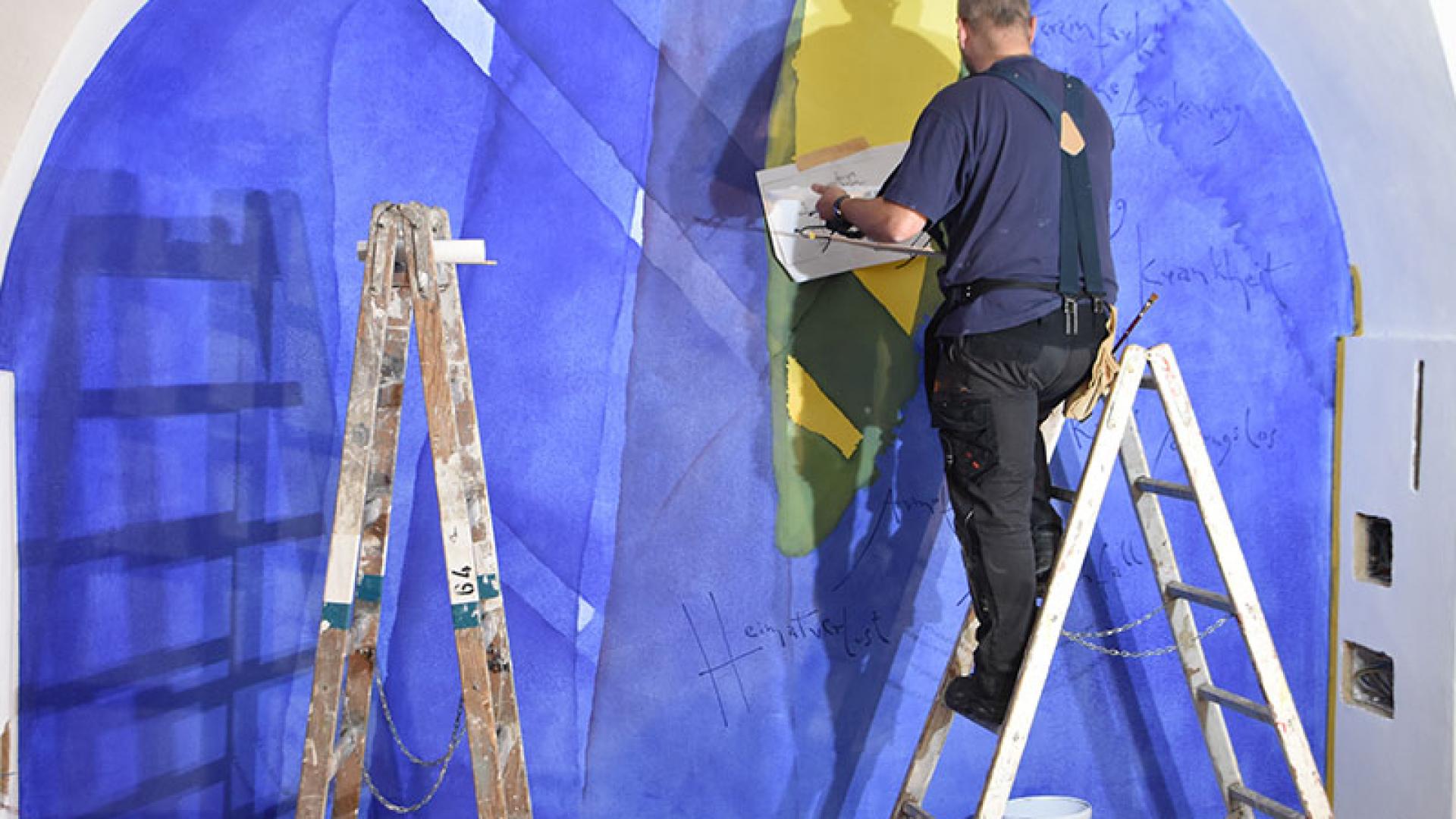 Vor allem nach einem Schicksalsschlag: 2011 stürzt er bei einer Kuppelausmalung acht Meter in die Tiefe. Eigentlich machen ihm die Ärzte nicht viel Hoffnung, dass er jemals wieder auf einem Gerüst stehen kann. Doch Kammerer beißt sich durch, eineinhalb Jahre lang. Er nimmt die Arbeit wieder auf. Denn die Architektur, die Raumgestaltung ist das, was sein Handwerk zu einer besonderen Kunst macht: „Für jeden Künstler ist es eine Erfüllung, wenn es in die Größe geht.“