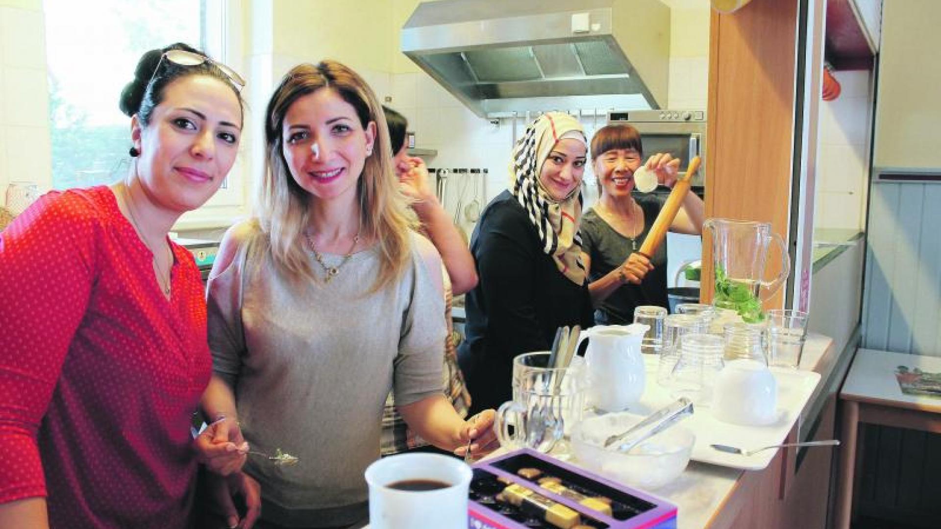 Es wird viel gescherzt und gelacht. Sie tauschen sich über Rezepte aus, sprechen über ihre Kinder oder über das Leben in Deutschland. Neben Leiterin Gunhild Nienkerk und Thing arbeitet auch Safaa Awward aus dem Irak hier im Café. Sie spricht sehr gut Deutsch und übersetzt oft.
