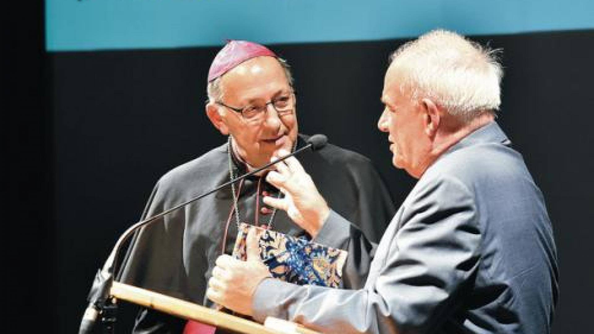 Extrem-Bergsteigers Reinhold Messner, dass die Gipfelkreuze auf den Bergen abgenommen werden müssten, eine klare Absage. „Das Kreuz symbolisiert die Kultur, in der wir leben“, sagte Hahne: „Besonders Frauen haben das Kreuz aus- und hochgehalten.“ Die Anwesenden fordert er auf: „Bitte macht nach diesem Abend keinen Punkt, sondern einen Doppelpunkt!“ Als wichtigsten Wert sieht Peter Hahne, „von der Hoffnung über den Tod hinaus“ zu berichten. Er erinnert an die Worte von Alexander Solschenizyn, der appellierte: „Holt Gott zurück in die Politik“. Das gilt ebenso für die Gesellschaft.