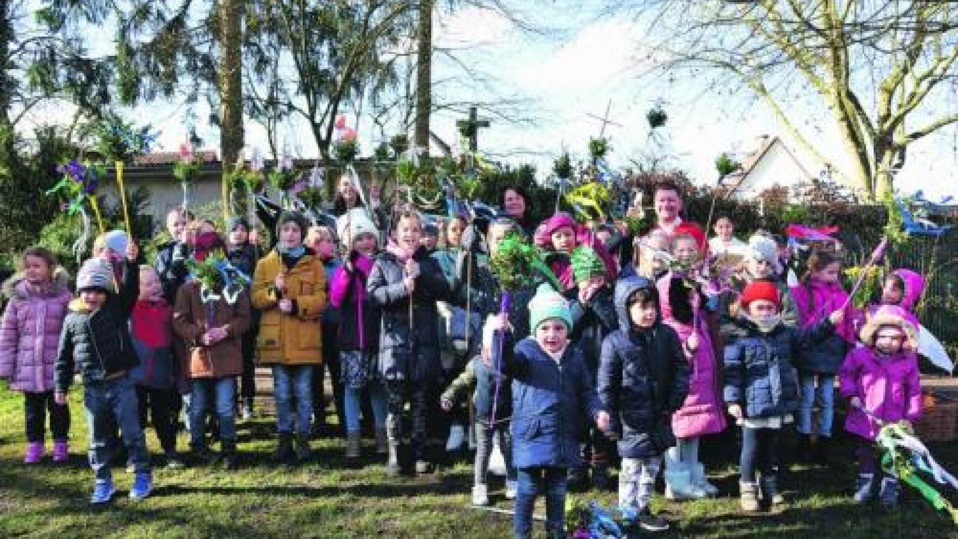 Kalt ist es, aber die Sonne scheint, als sich die vielen Kinder und Erwachsenen auf der Wiese neben der Kirche Maria – Hilfe der Christen versammeln. Der Gottesdienst an Palmsonntag ist in Quickborn immer besonders.
