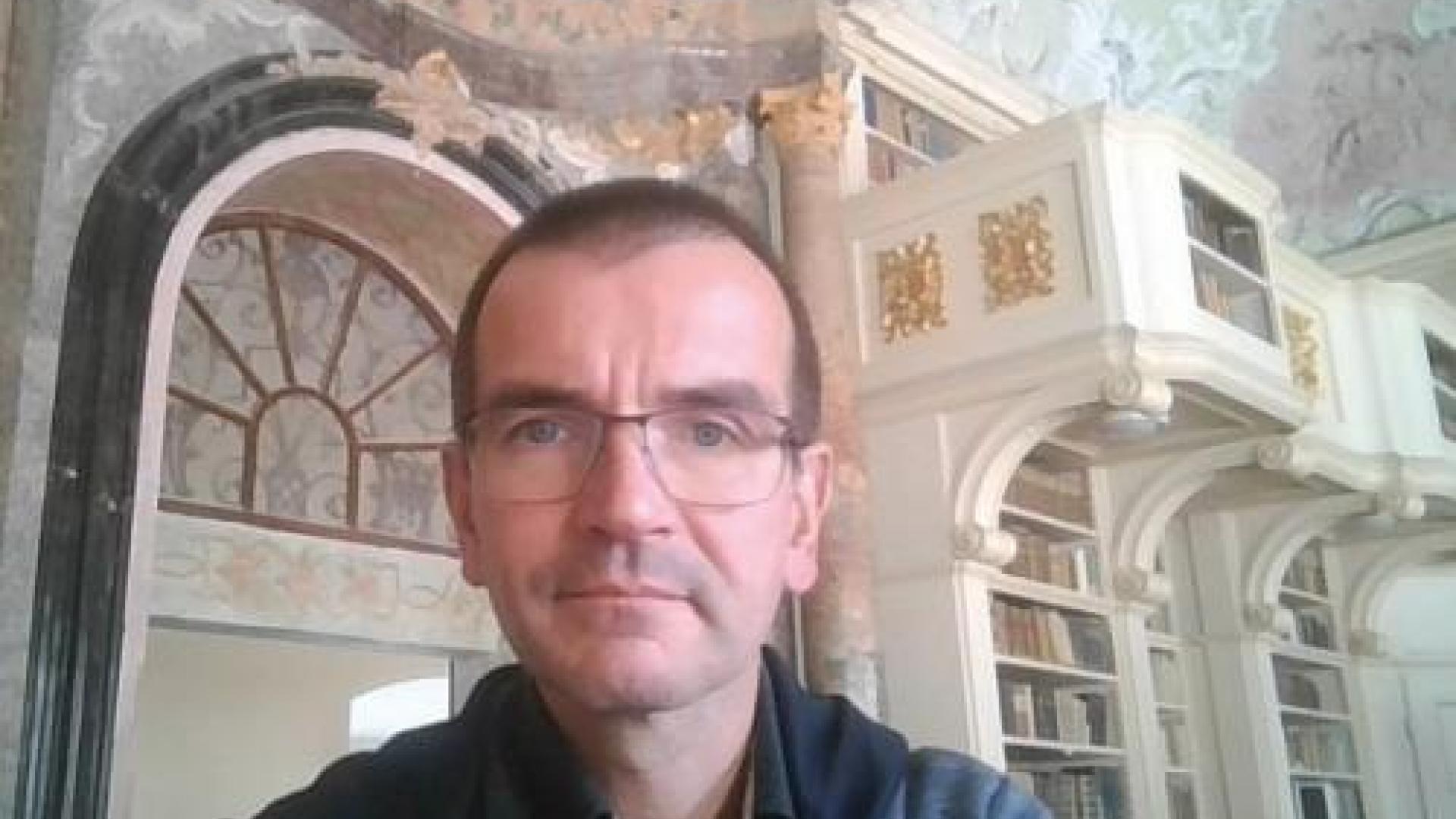 | Pfarrer Christian Bock, bisher Priester des Bistums Dresden-Meißen, in der Bibliothek des Trappisten-Klosters Engelszell. Die Trappisten sind im 16. Jahrhundert aus dem Zisterzienserorden hervorgegangen. Der offizielle Name lautet „Zisterzienser von der strengeren Oberser-vanz“. Mariawald, das letzte deutsche Trappisten-Männerkloster, wurde im September geschlossen. | Foto: privat |