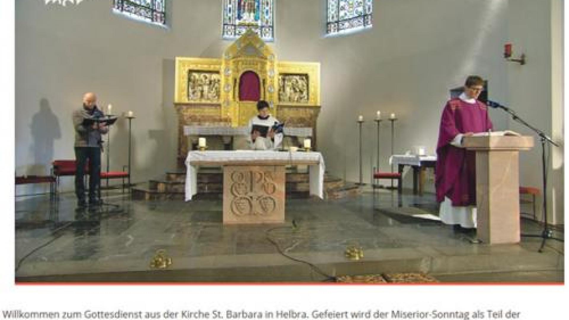 Radio-Gottesdienste zum Beispiel bei MDR-Kultur gehören zum Sonntag. So übertrug der Sender am 29. März die Eucharistiefeier aus der St. Barbara-Kirche in Helbra. Neu war allerdings, dass der Gottesdienst auf der Homepage des MDR auch per Videostream live mitverfolgt werden konnte. MDR-Mitarbeiter und die kirchlichen Beauftragten machten dies gemeinsam mit dem Ascherslebener Pfarrer Johannes Zülicke, Gemeindereferentin Teresa Hofmann und engagierten Gemeindemitgliedern möglich.