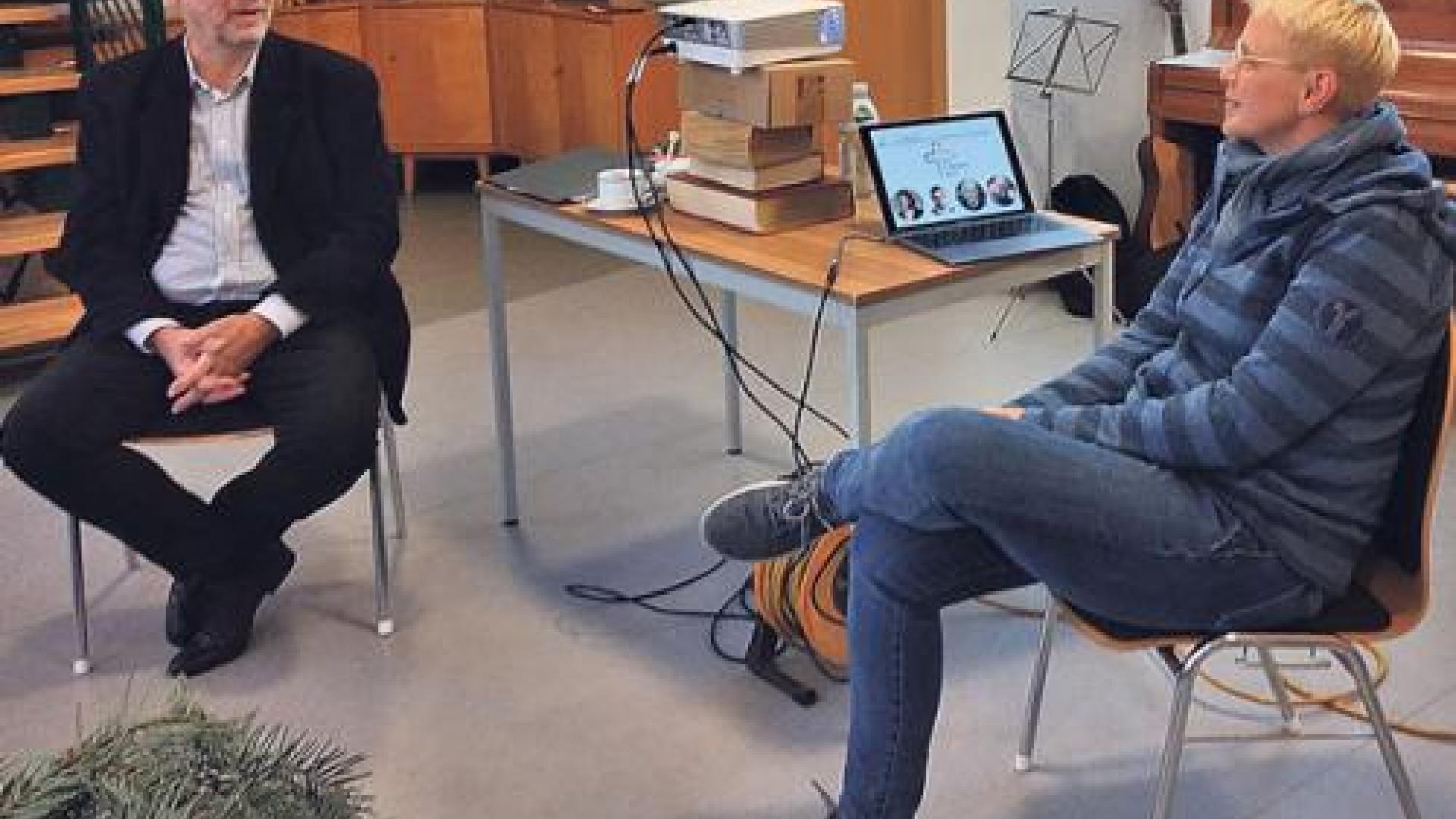 | Esther Göbel mit Diözesanratsmitglied Ulrich Höckner, der den Nachmittag moderierte. Foto: Pfarrei Greifswald |