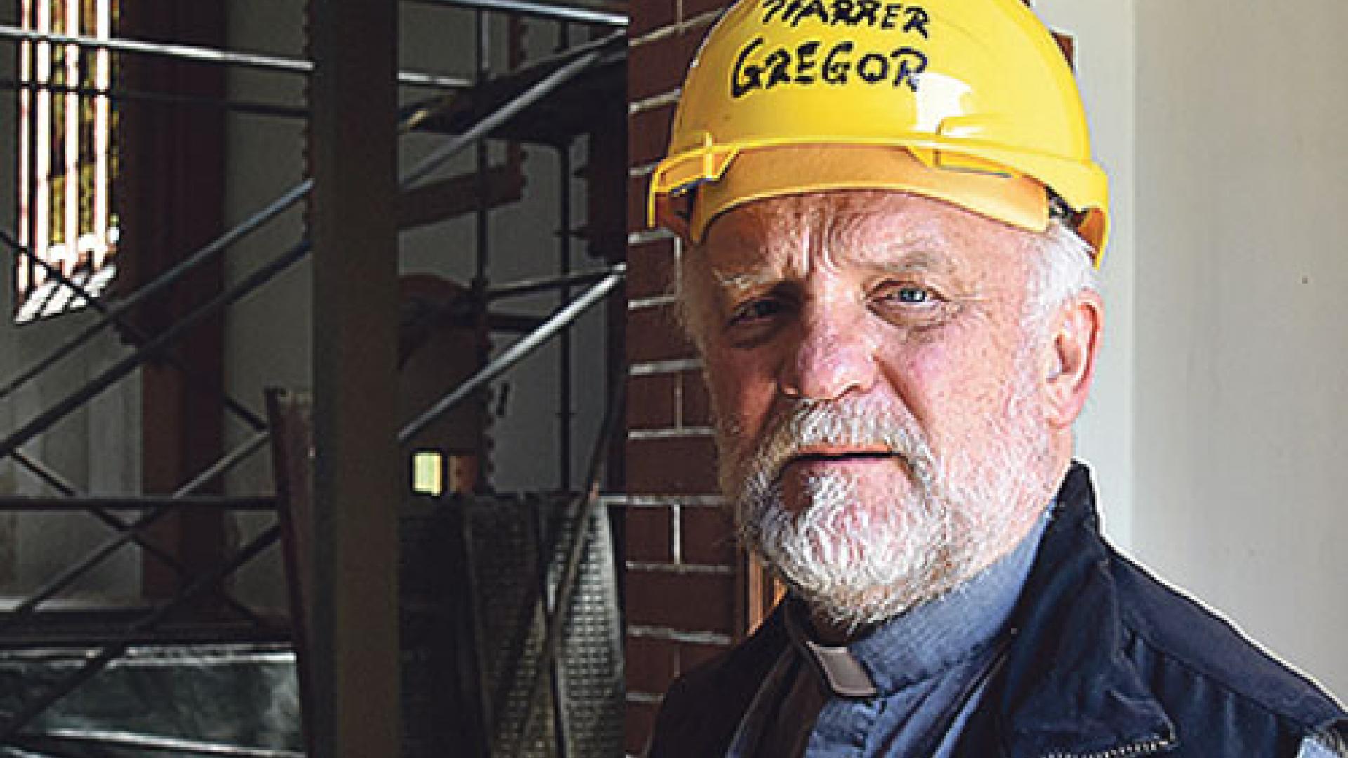 | Pfarrer Peter Paul Gregor in seiner Pfarrkirche während der Sanierung. Foto: Raphael Schmidt |