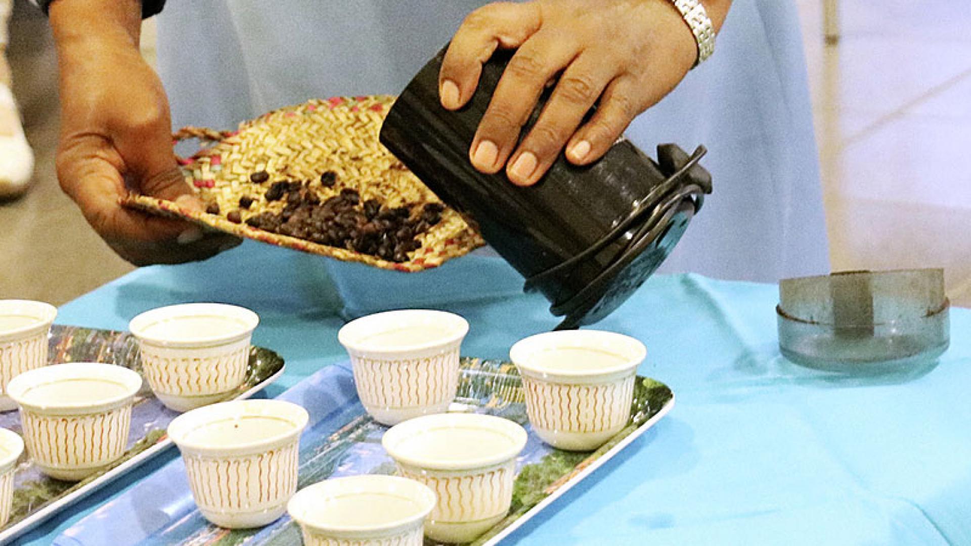 Askalemariam Karlo gießt den fertigen Kaffee dann in kleine