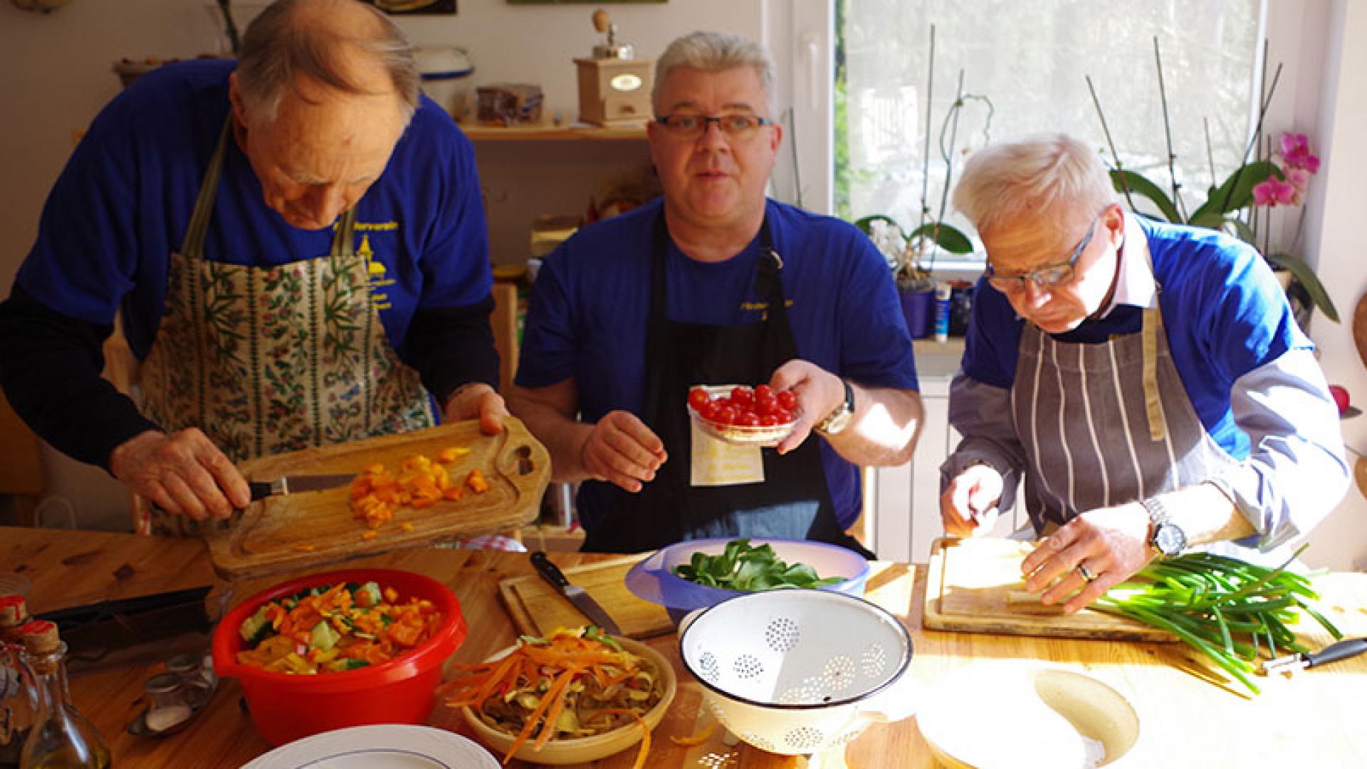 Während Strauß mit seinen beiden Vorstandskollegen Gemüse putzt und klein schneidet, erzählt er: „Es gibt zwischen kirchlichem Brauchtum, christlicher Symbolik und Küche eine Verbindung, doch die gerät zunehmend in Vergessenheit.“ Genau hier sah er die Niesche für sein Kochbuch. Es sollte eine „kulinarische Reise durch das Kirchenjahr“ werden. „Mir war bei dem Buch wichtig, dass darin die einzelnen Festtage und die verschiedenen Zeiten beschrieben werden, dass das Brauchtum, was sich um die Fest- und Heiligentage herum gebildet, hat, erklärt wird.“ Doch nicht für alles gab es schon fertige Rezepte.