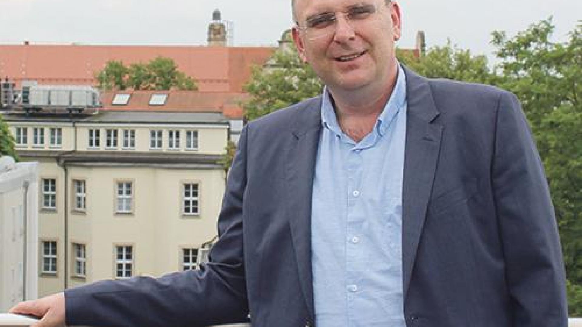 | Hoch über den Dächern von Magdeburg: Im Roncalli-Haus direkt an der St.-Sebastian-Kathedrale bildet Thomas Pogoda Diakone aus – und wird bald selbst geweiht. Foto: Oliver Gierens |