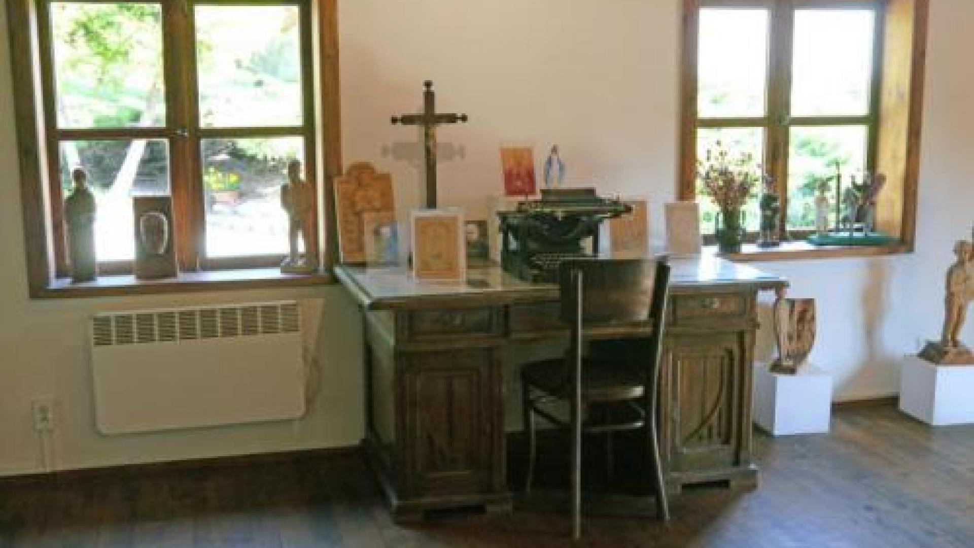 Wir sahen das Schlafzimmer seiner Eltern, in dem ein Bild der Heiligen Familie über dem Bett hängt und ein Kreuz an der Wand heftet. Dann ein Moment des Innehaltens. In einem weiteren Raum ist in einer Vitrine die noch schmutzige blau-weiß gestreifte Häftlingskleidung zu sehen, die Maximilian Kolbe in Auschwitz tragen musste.